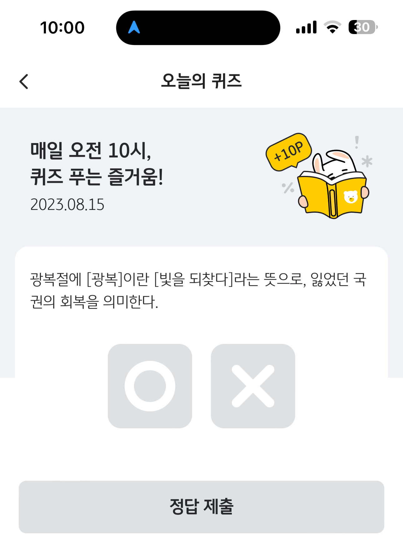KB Pay 오늘의 퀴즈 정답은 O 입니다