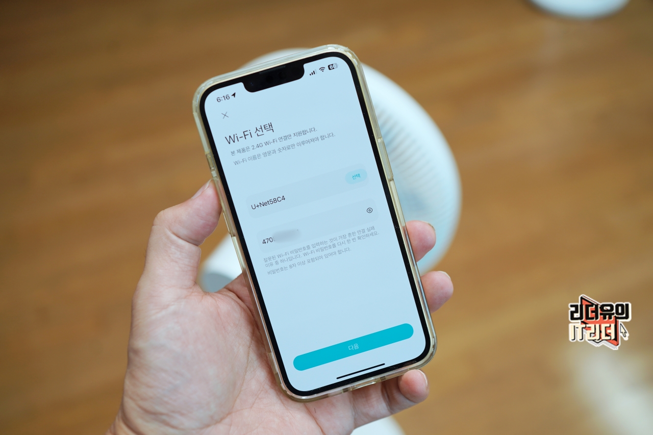샤오미 선풍기 초기화가 되었다면 이제 Wi-Fi 선택 메뉴가 나옵니다. 여기서 2.4GHz 와이파이를 선택하고 비밀번호를 입력합니다. 여기서 중요한 포인트는 스마트폰에서 먼저 해당 Wi-Fi를 잡고 설정하면 됩니다.