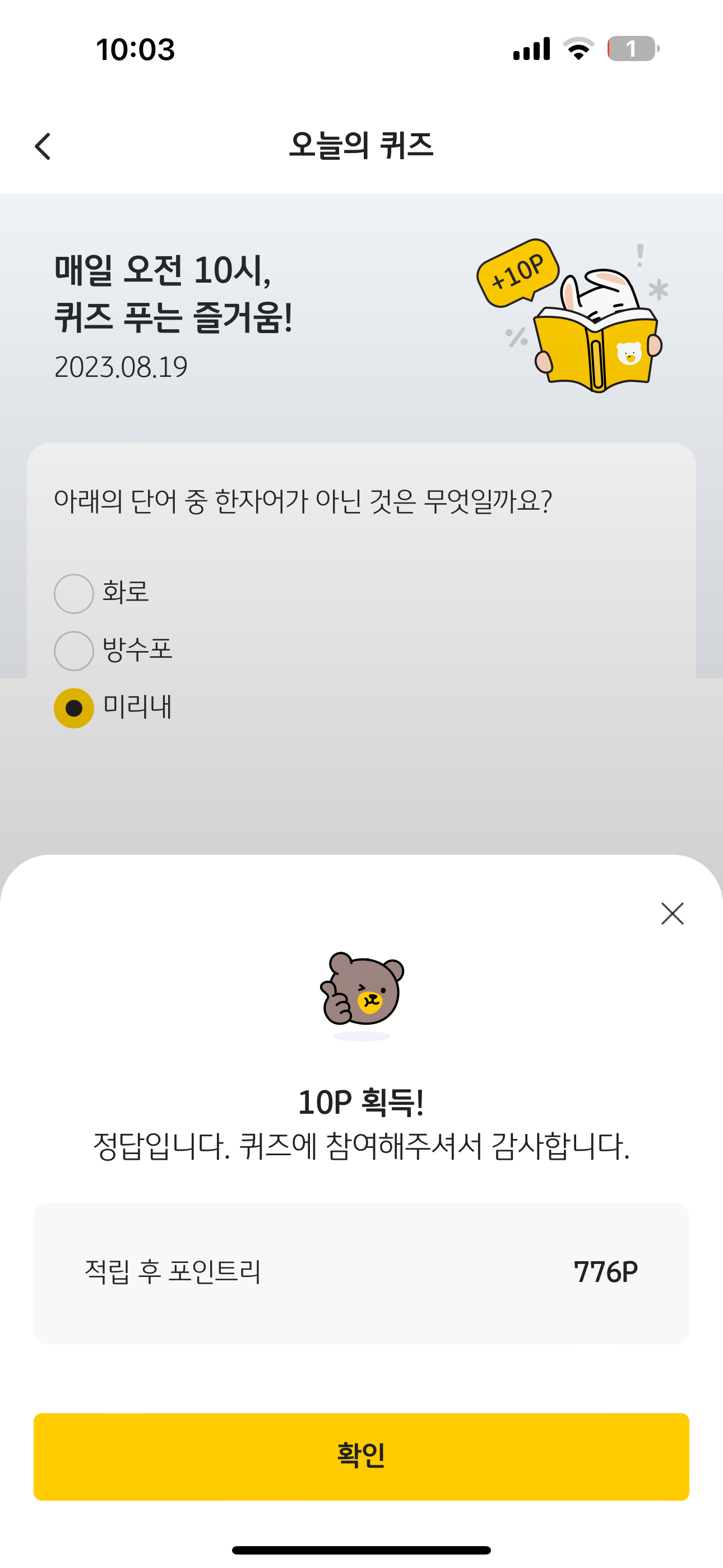 오늘도 포인트리 10포인트를 받았습니다. 포인트리는 현금 전환이 가능하니 꼭 받으시고요. 여러분의 재테크를 응원합니다