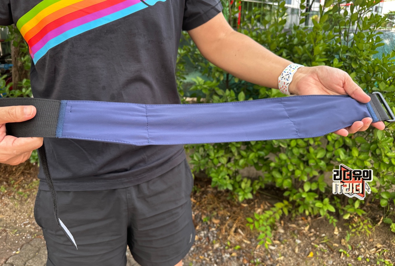 얼게이트 러닝벨트 안쪽면 모습입니다. 맨살에 바로 장착해도 쓸림 없는 소재로 되어 있습니다. 엄청 긴 장거리를 뛰면 모르겠지만 약 10km 정도에서는 무리 없어 보입니다.