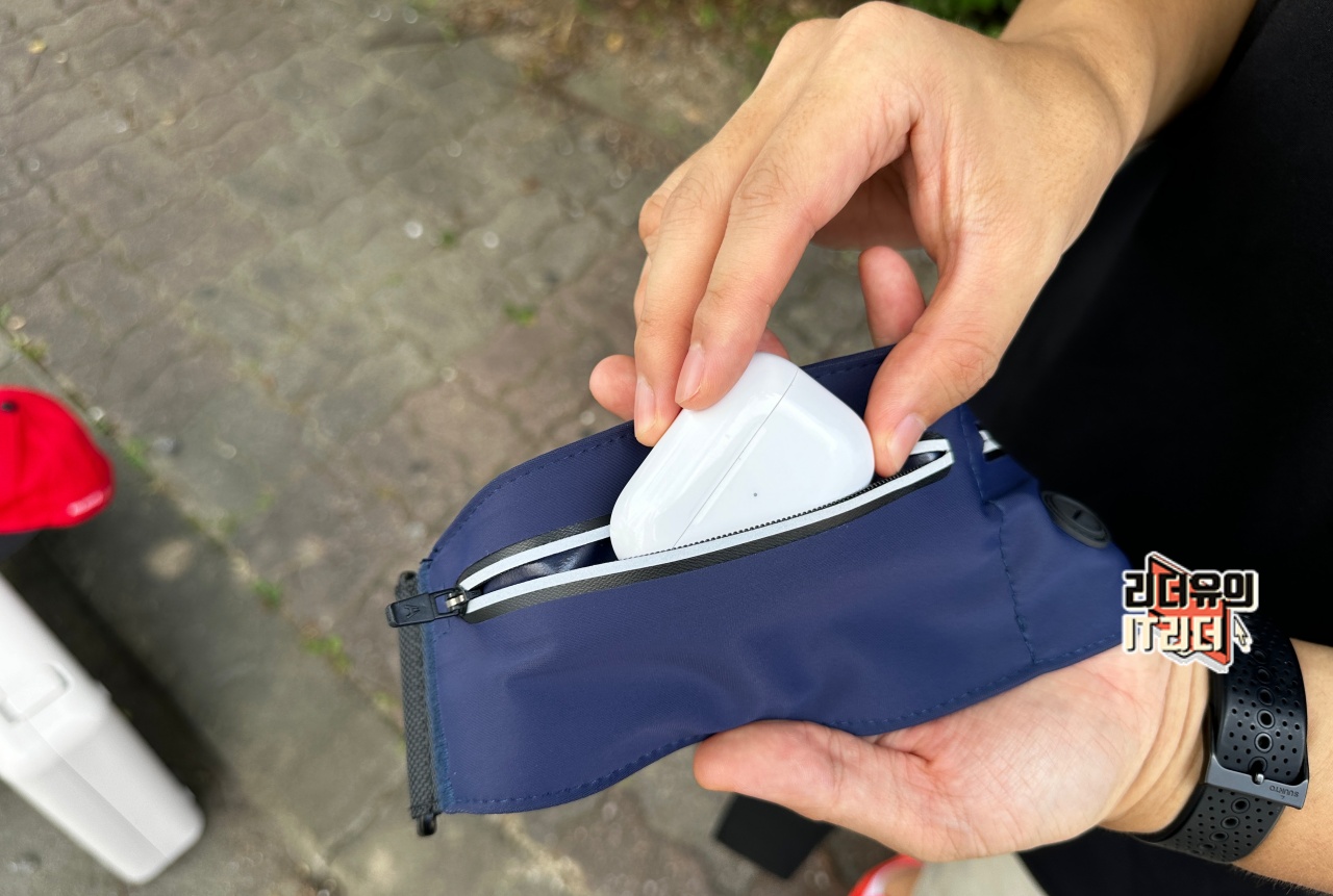 얼게이트 러닝벨트를 선택한 이유는 제가 뛸때 아이폰과 에어팟프로 케이스를 같이 휴대하기 때문입니다. 처음에 선택한 러닝벨트는 주머니가 하나라 애매하더라고요. 그런데 얼게이트 러닝벨트는 주머니가 3개라 구분 보관이 가능해서 좋습니다.