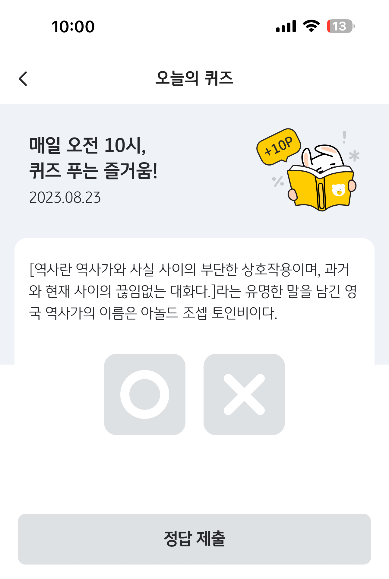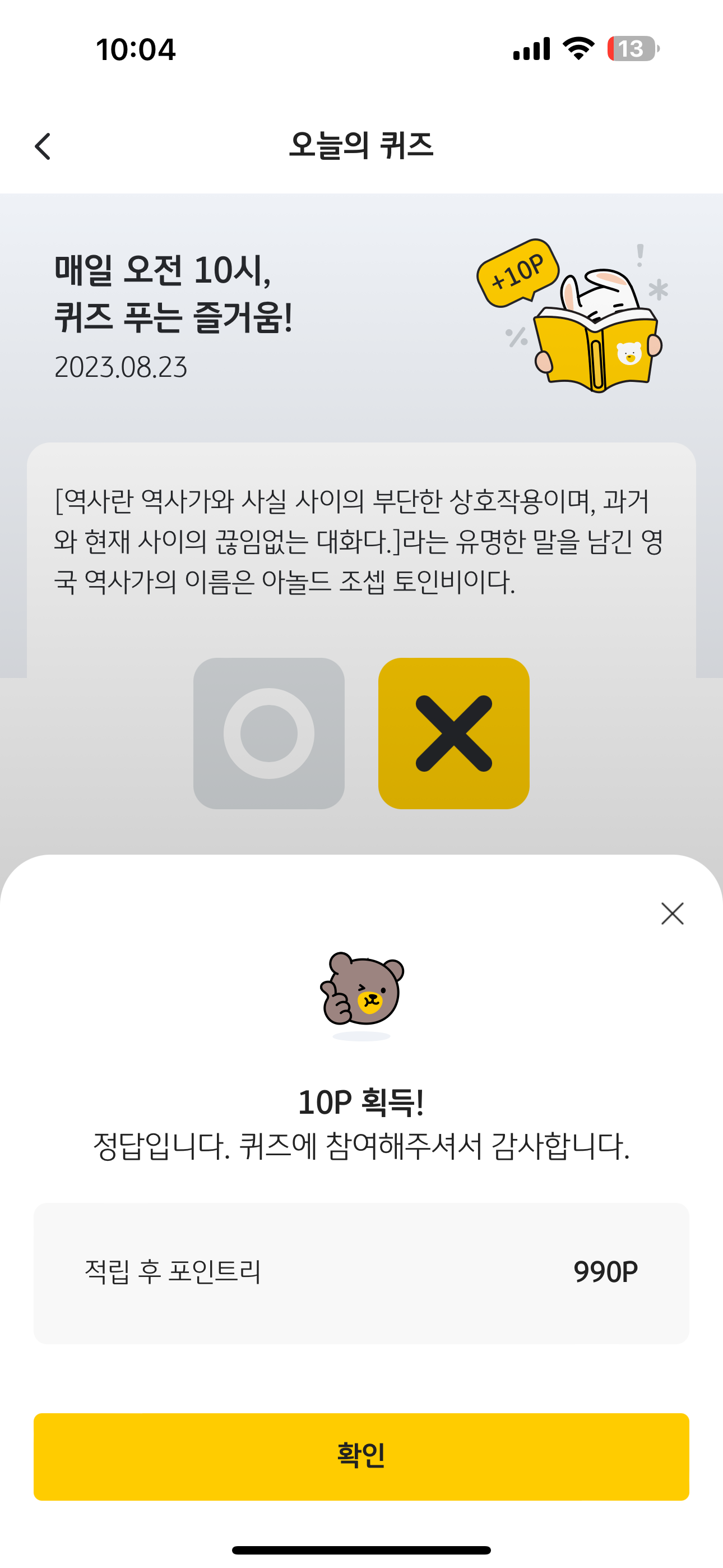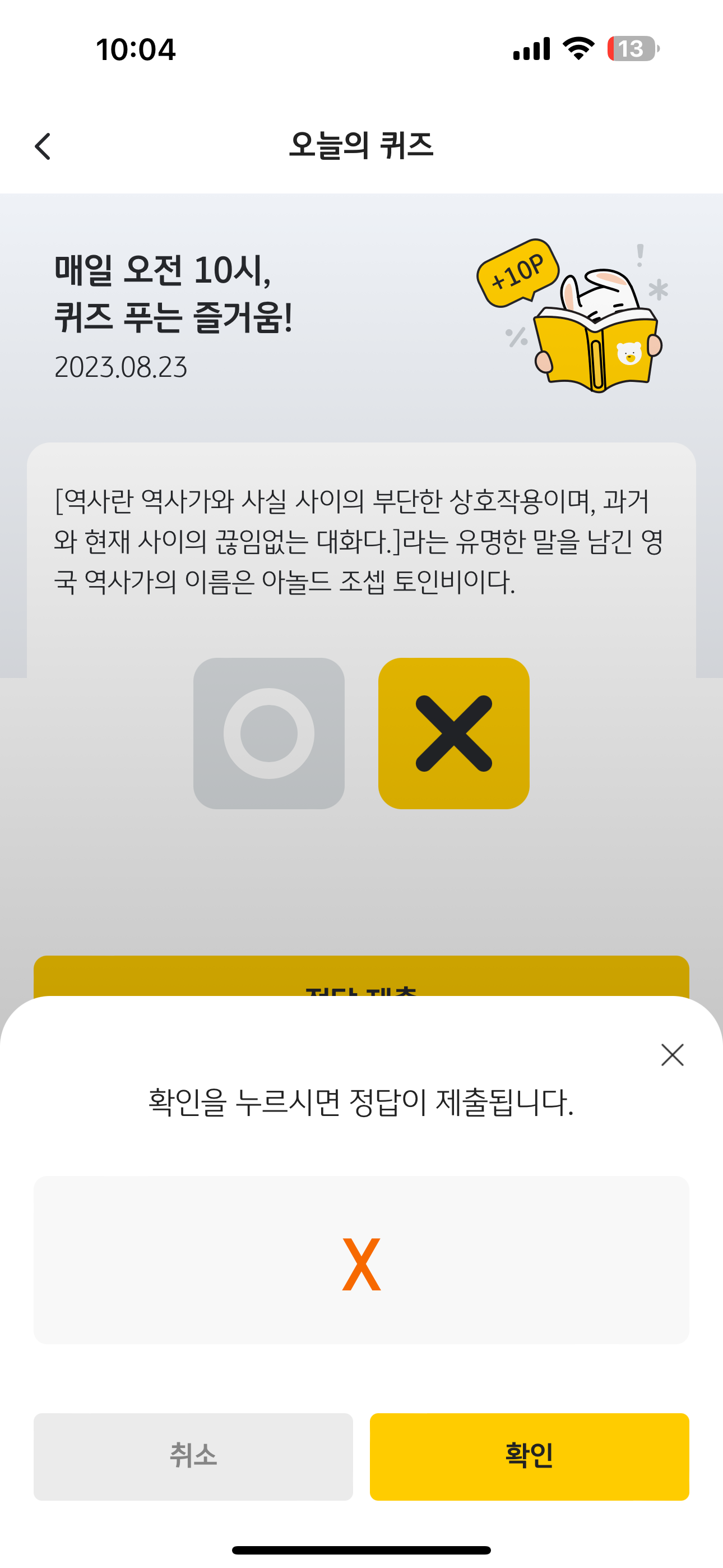 KB Pay 오늘의 퀴즈 정답은 X 입니다