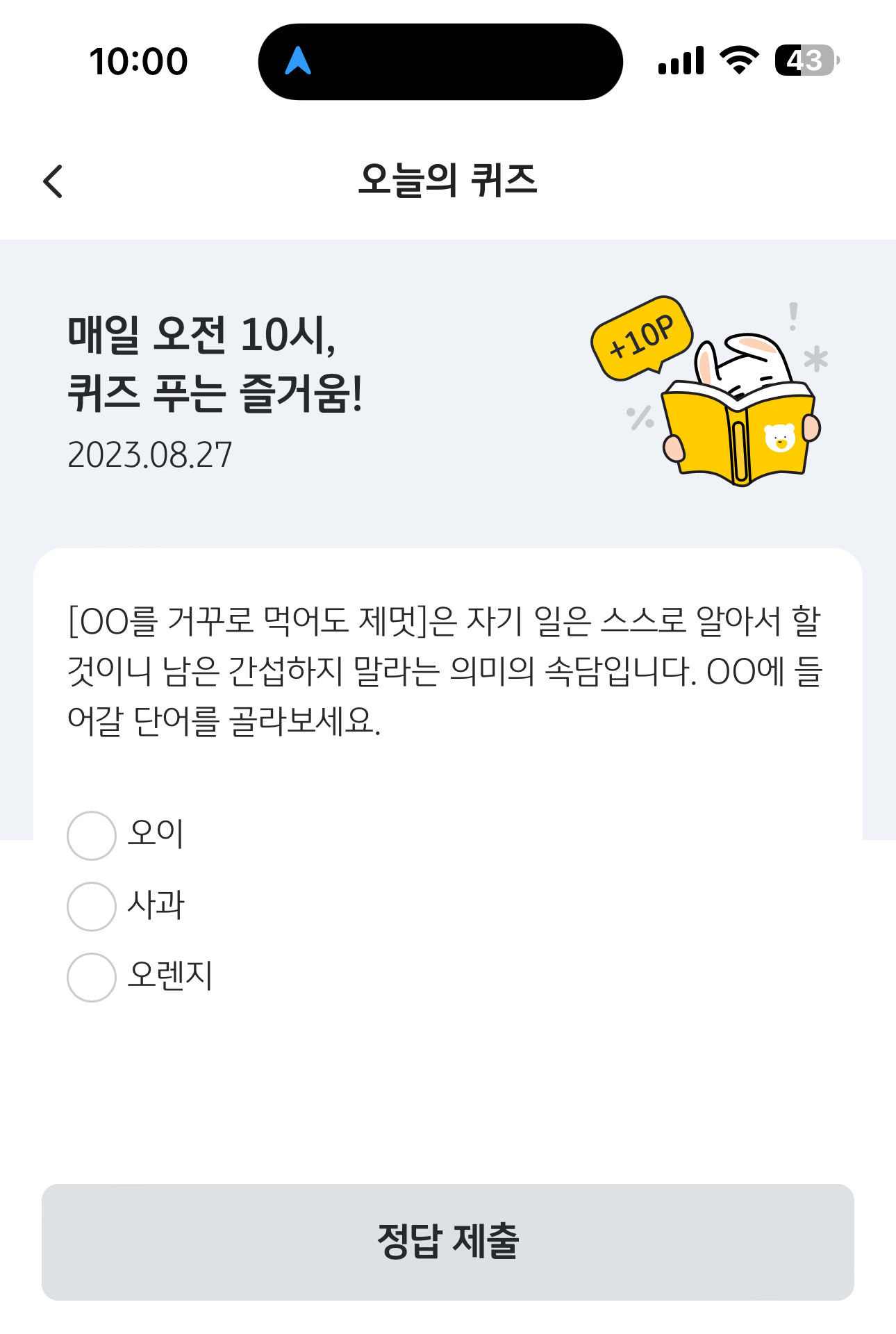 KB Pay 오늘의 퀴즈 정답은 오이 입니다