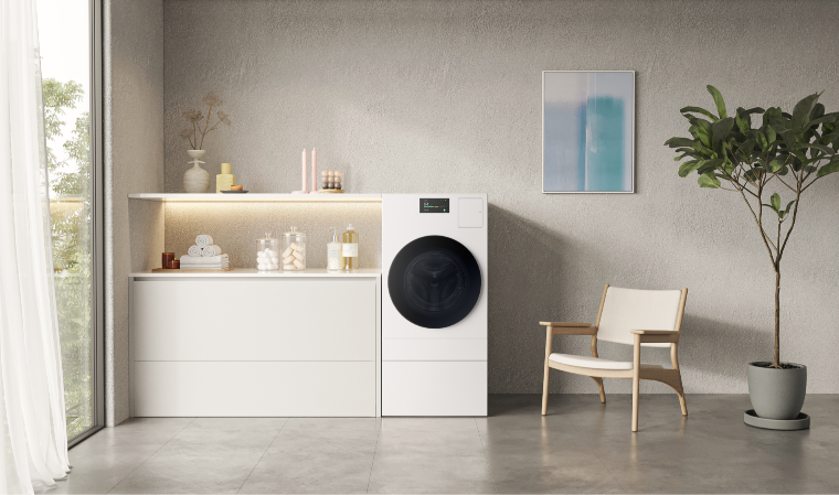 삼성 세탁건조기는 그냥 세탁기 형태의 디자인을 가지고 있습니다. 세탁기 속에 건조기가 들어간 형태이기 때문에 디자인적으로 큰 변화는 없습니다. 그리고 별도의 건조기가 없기 때문에 하단부를 별도의 저장공간으로 사용할 수 있어 더욱 깔끔한 세탁실을 만들 수 있습니다.