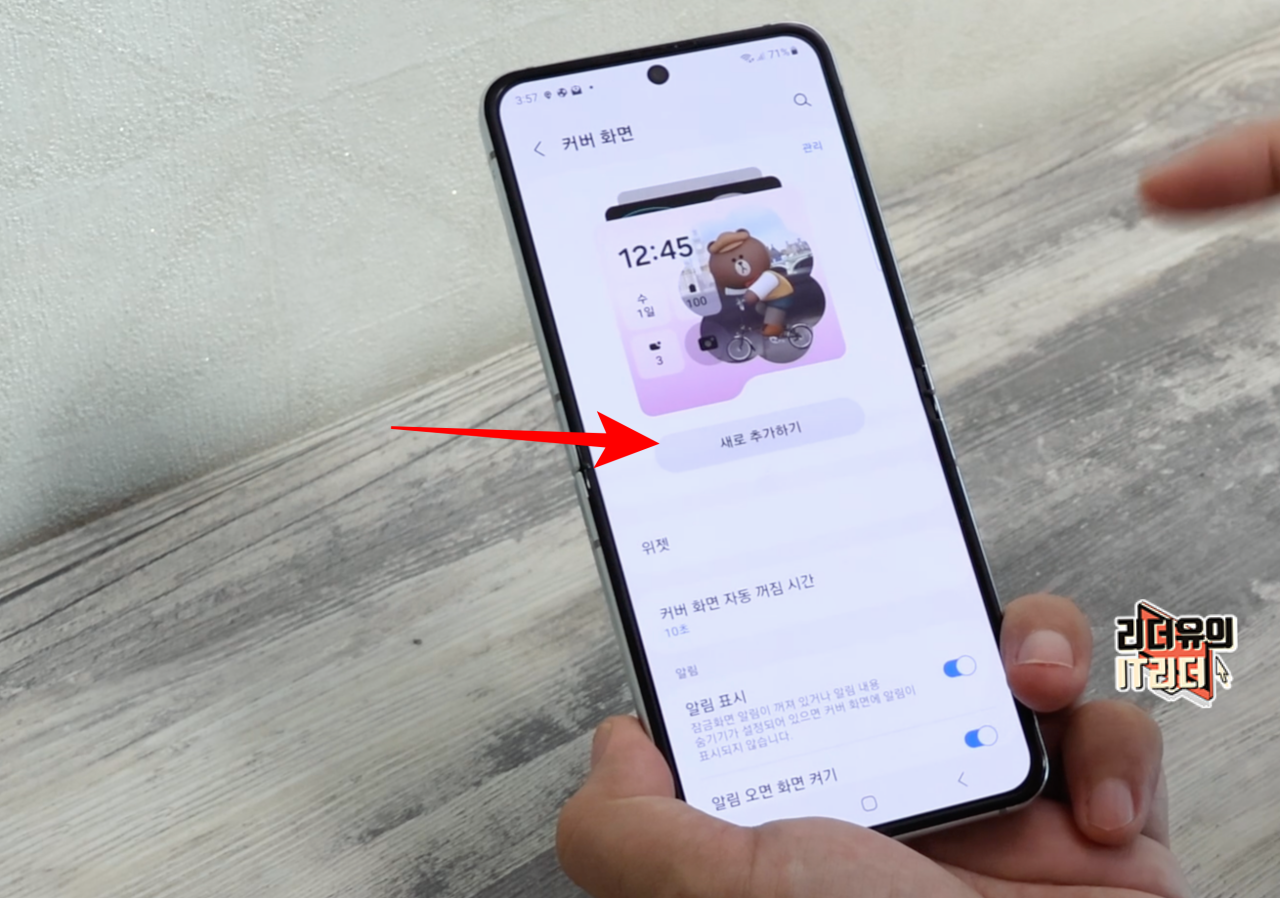 그럼 갤럭시Z 플립5 커버 화면 설정 메뉴가 나오고 새로 추가하기 메뉴가 있습니다.