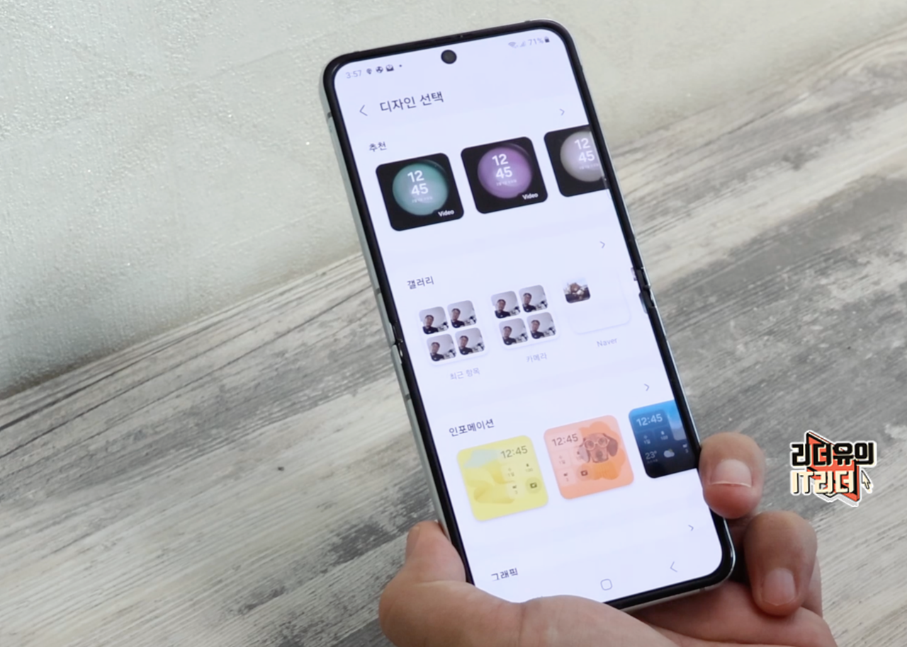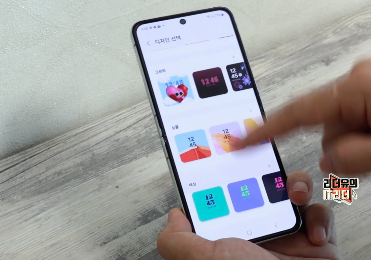갤럭시Z 플립5 커버 화면에는 정달 다양한 테마가 제공이 됩니다. 각각의 테마에 따라 개별 편집이 가능하니 자신만의 스타일로 갤럭시Z 플립5 커버 디스플레이를 꾸며 보세요