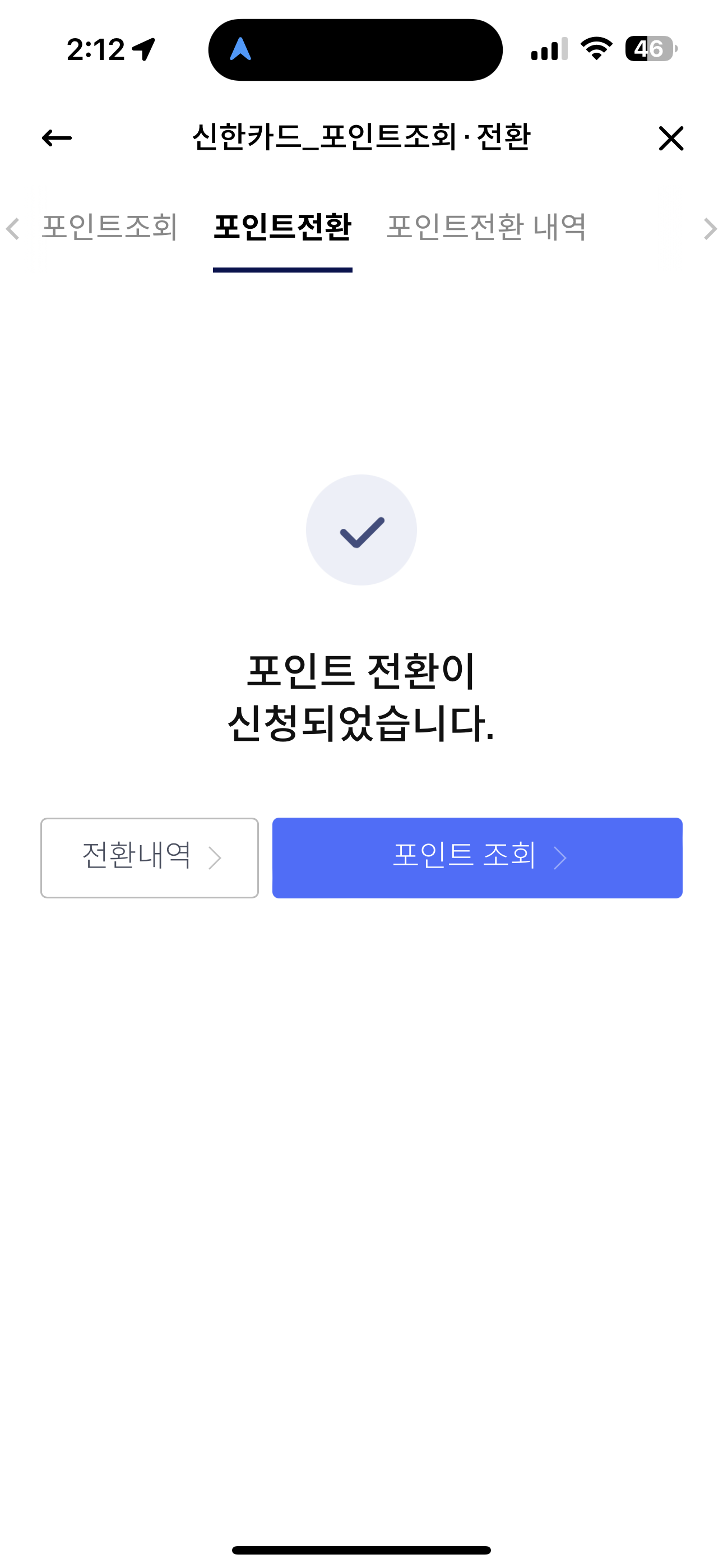 한번 더 전환신청 포인트와 전환완료 후 포인트를 확인할 수 있게 나오고