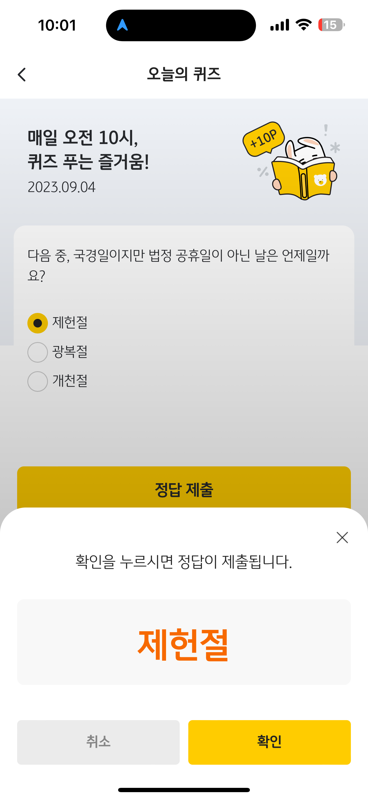 KB Pay 오늘의 퀴즈 정답은 제헌절 입니다