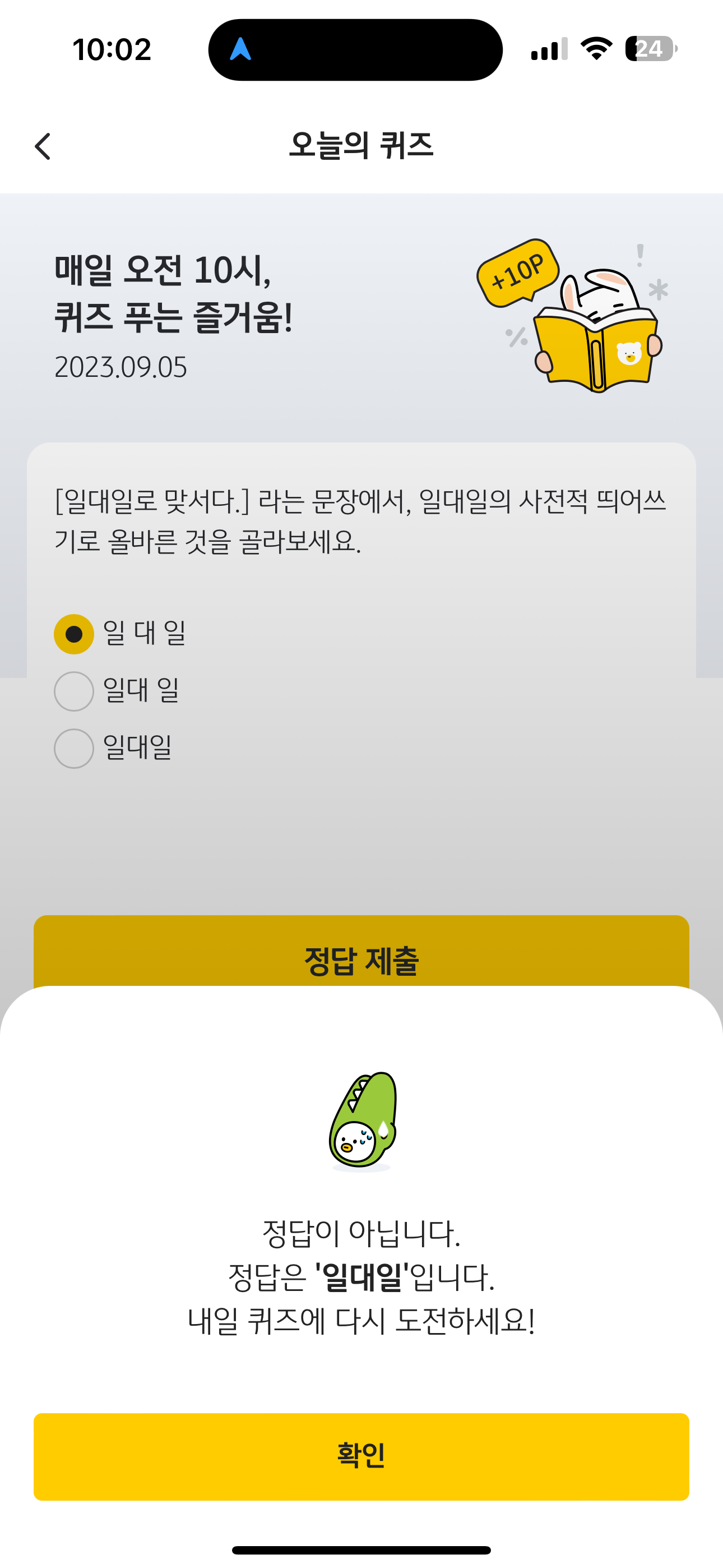 KB Pay 오늘의 퀴즈 9월 5일 문제입니다. 저는 틀렸으니 여러분은 주의하세요