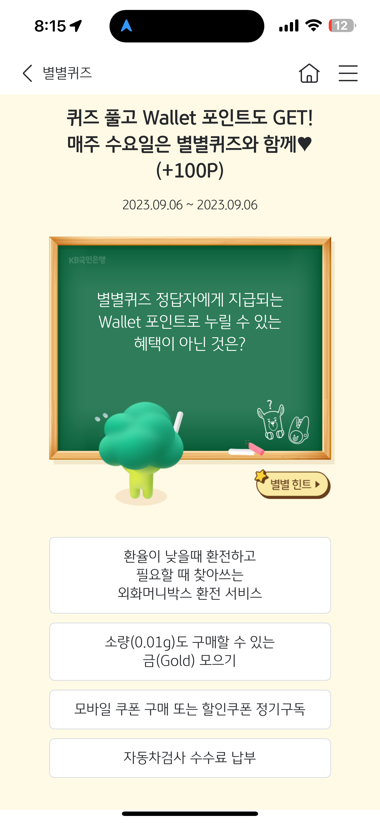 KB 스타뱅킹 별별퀴즈 9월 6일 문제입니다.