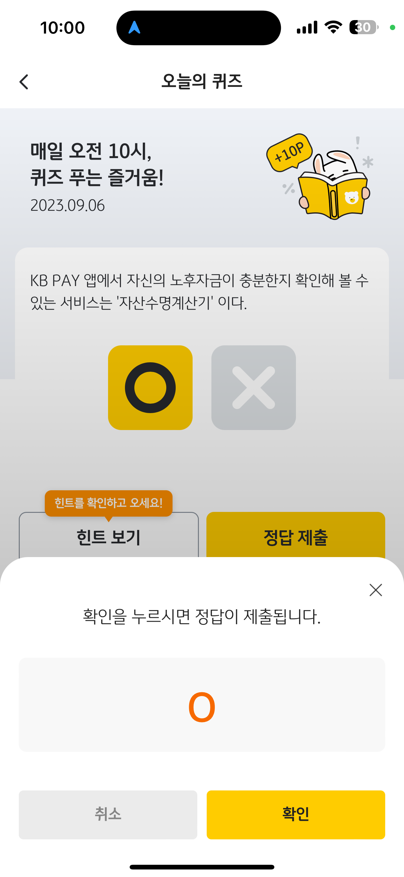 KB Pay 오늘의 퀴즈 정답은 O 입니다