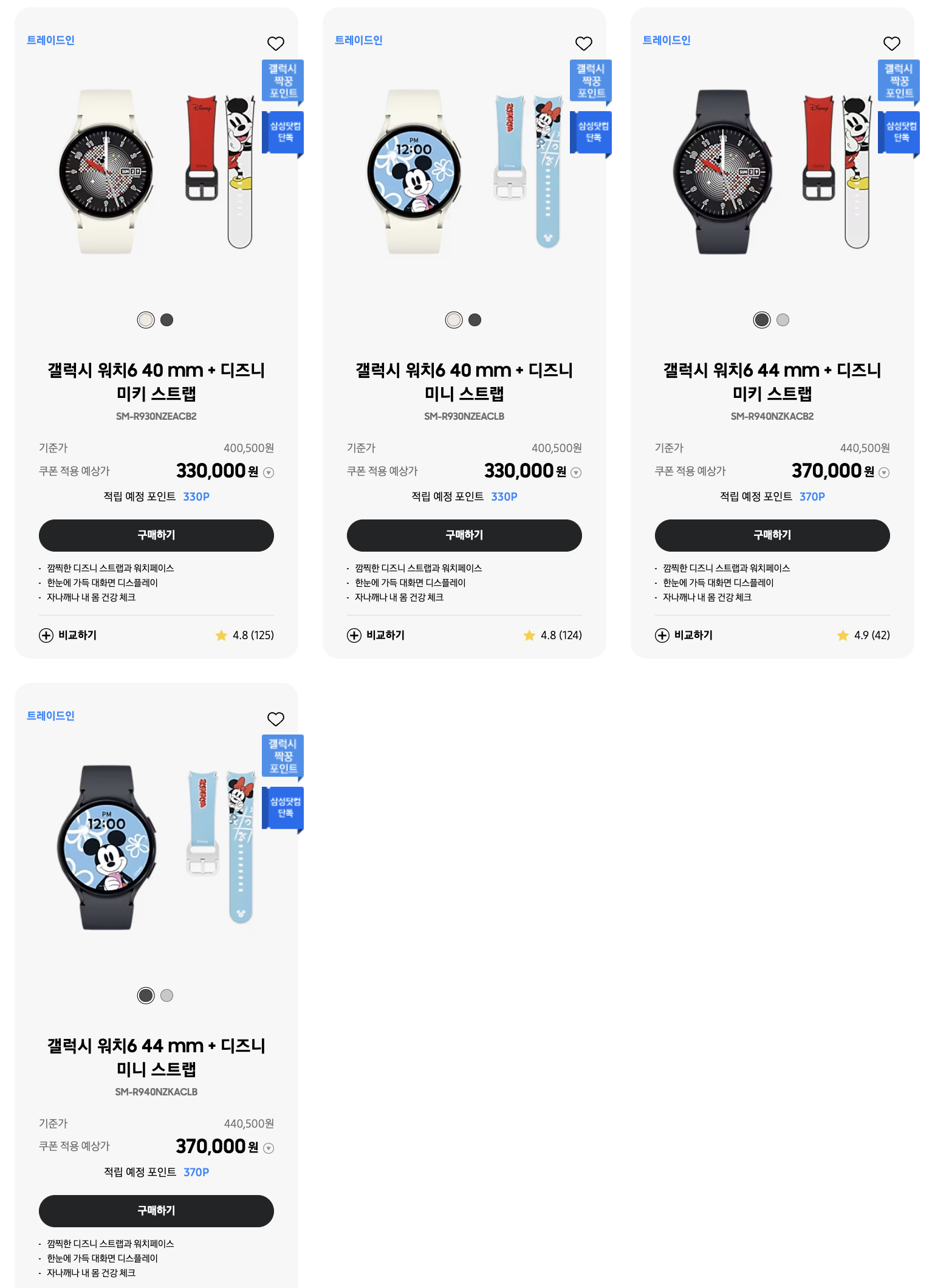 삼성 갤럭시워치6 디즈니 미키, 미니 스트랩 에디션 가격