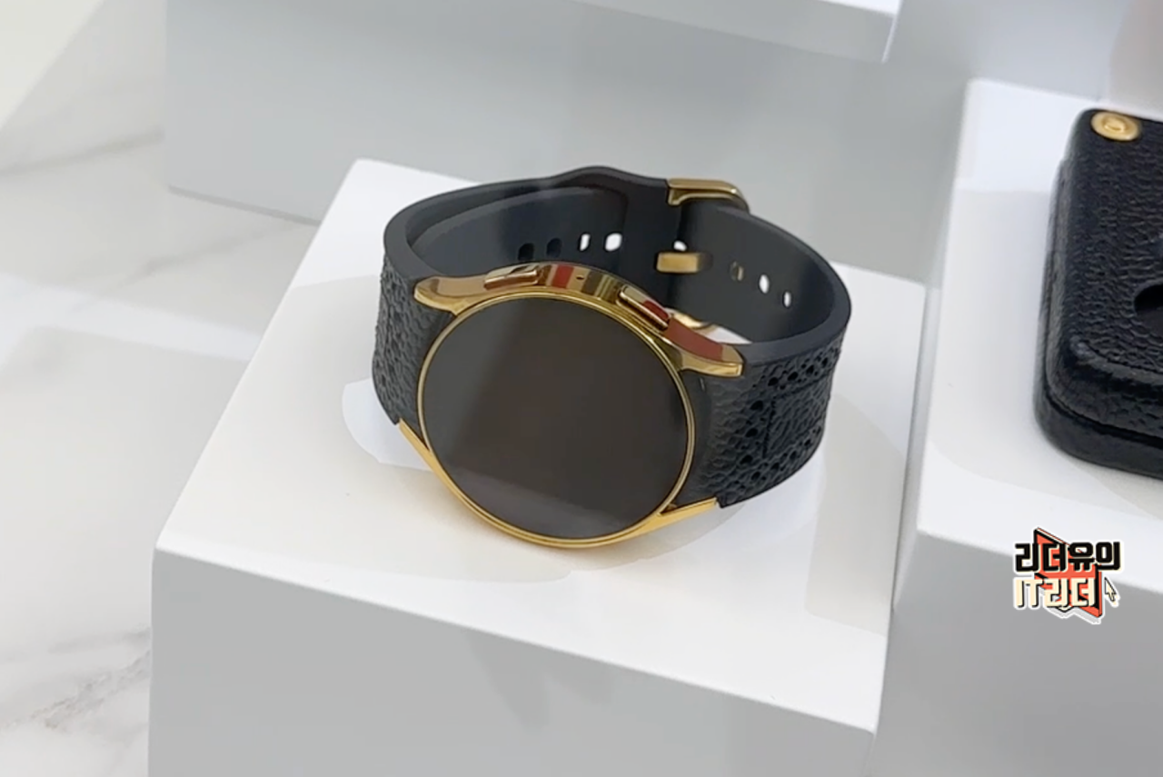 삼성 갤럭시Z 폴드5 톰브라운 에디션 전용 갤럭시워치6 톰브라운 에디션 입니다. 기본 색상에는 없는 골드 색상을 적용해 차별화를 주었습니다. 그런데 골드 색상에다가 제공되는 블랙 스트랩까지 적용하니 아재 스마트워치 같은 느낌이 듭니다. 너무 강한 골드 색상이라 호불호가 많이 갈릴 것 같습니다.