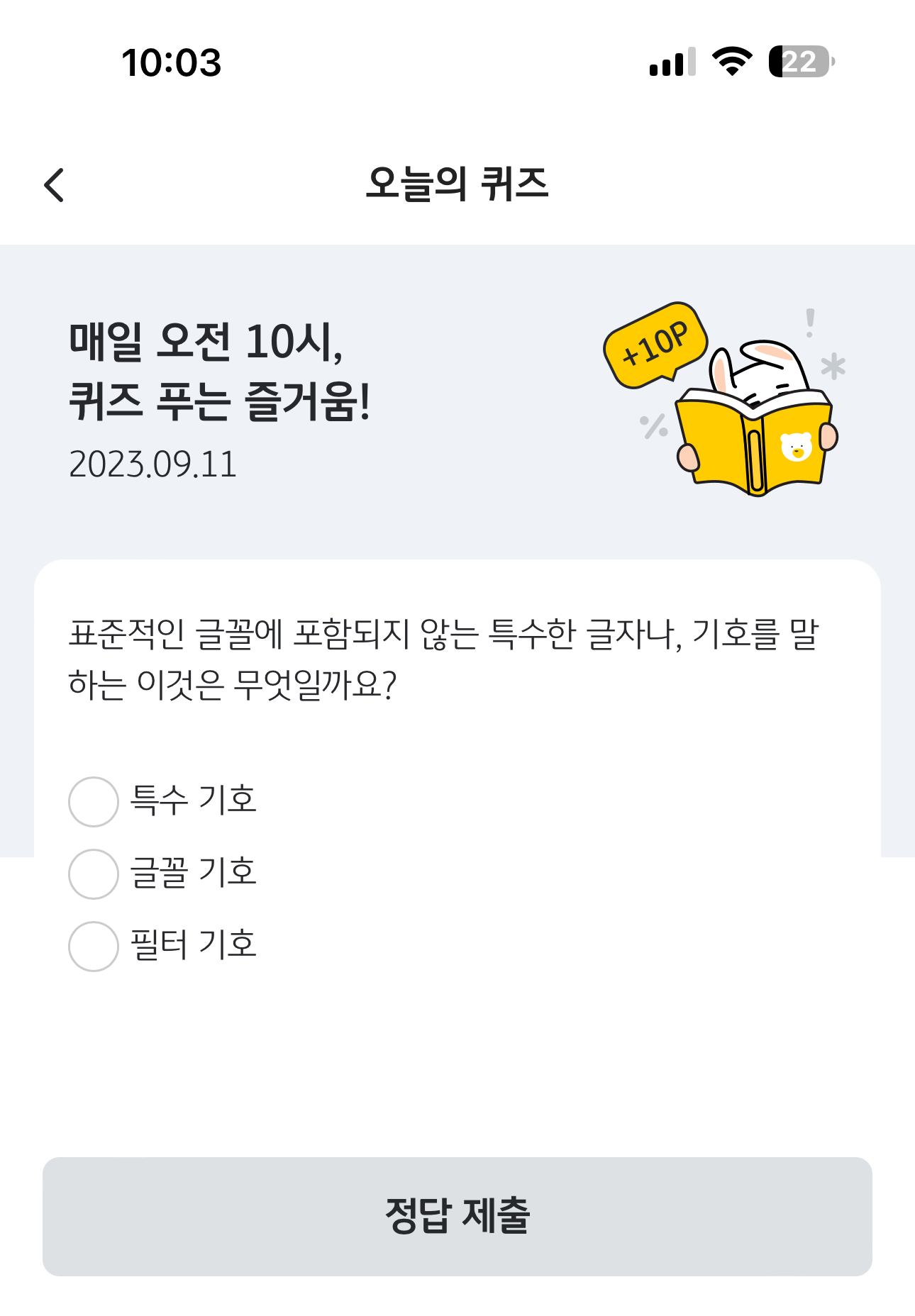 KB Pay 오늘의 퀴즈 9월 11일 정답(표준적인 글꼴에 포함되지 않는 특수한 글자나, 기호를 말하는 이것은 무엇일까요?)