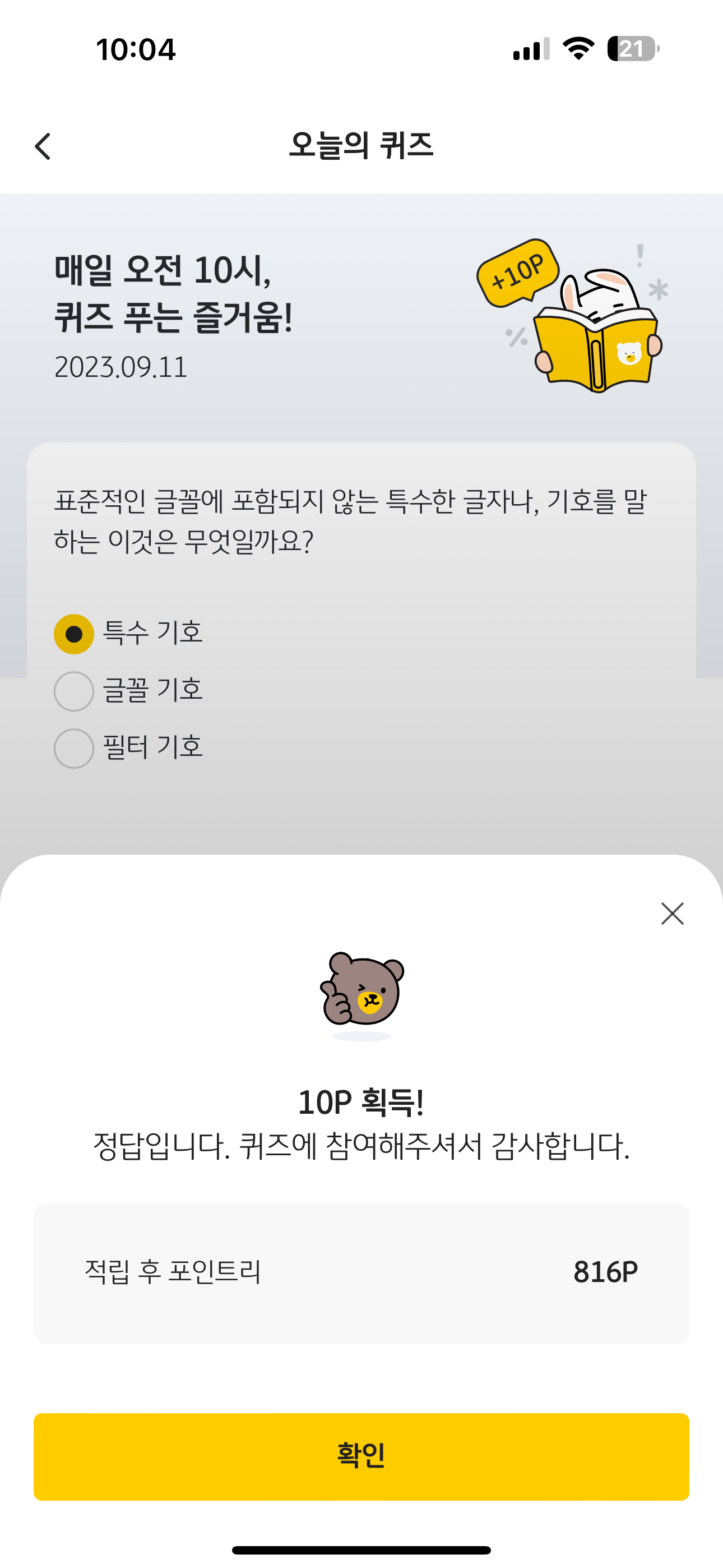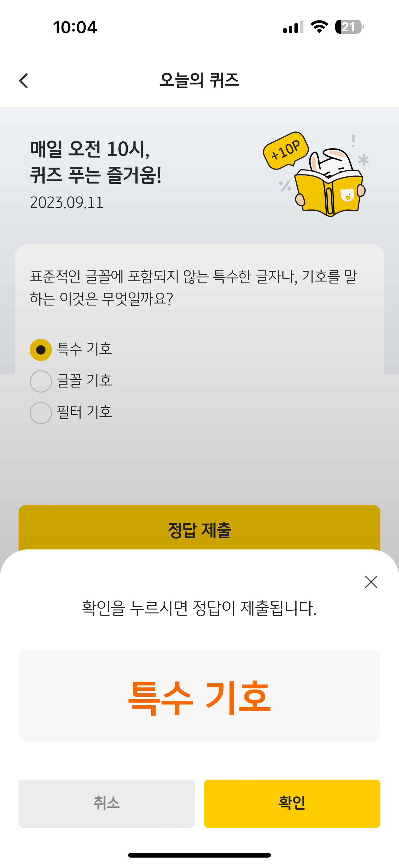 KB Pay 오늘의 퀴즈 정답은 특수 기호 입니다