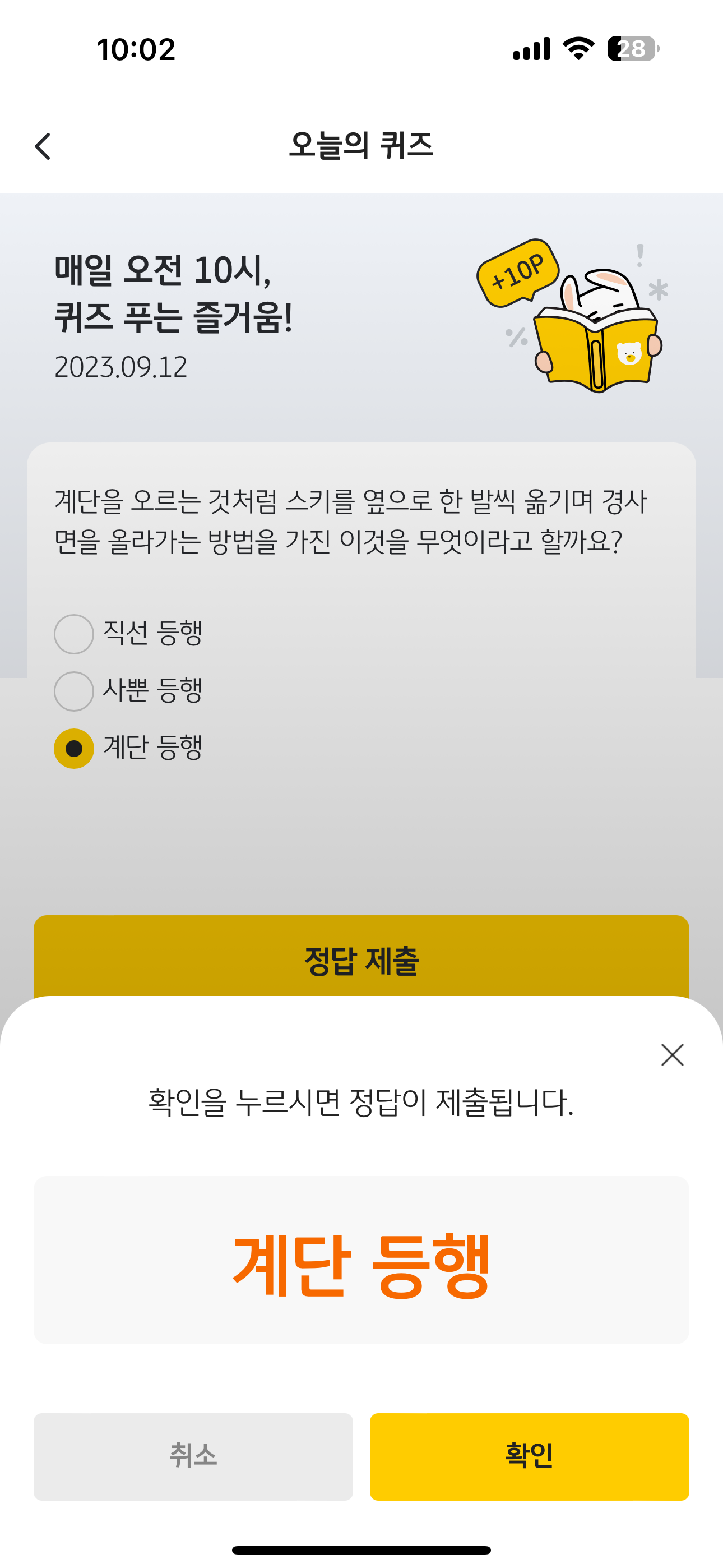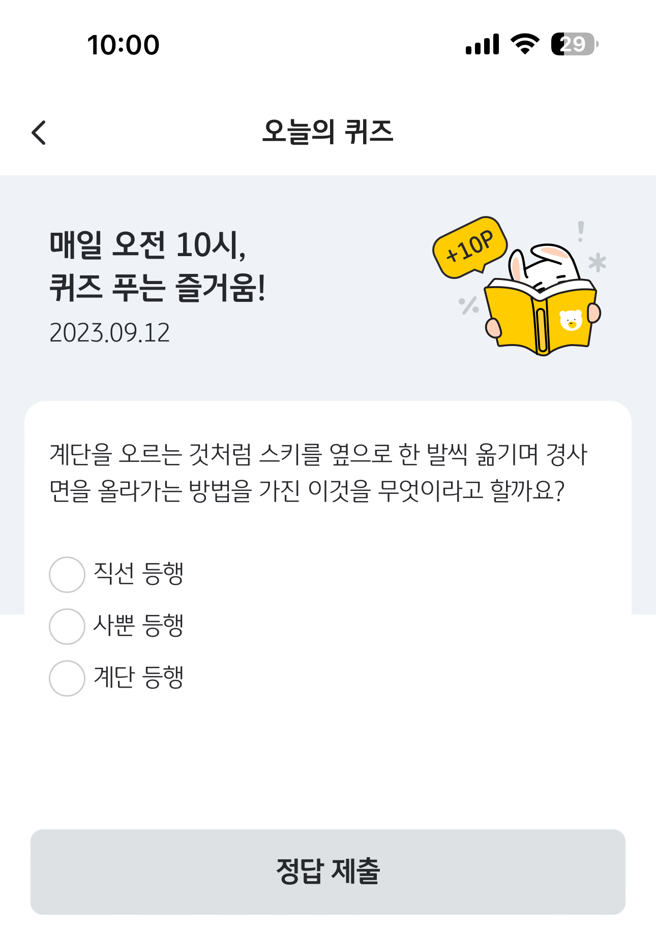 KB Pay 오늘의 퀴즈 정답은 계단 등행 입니다