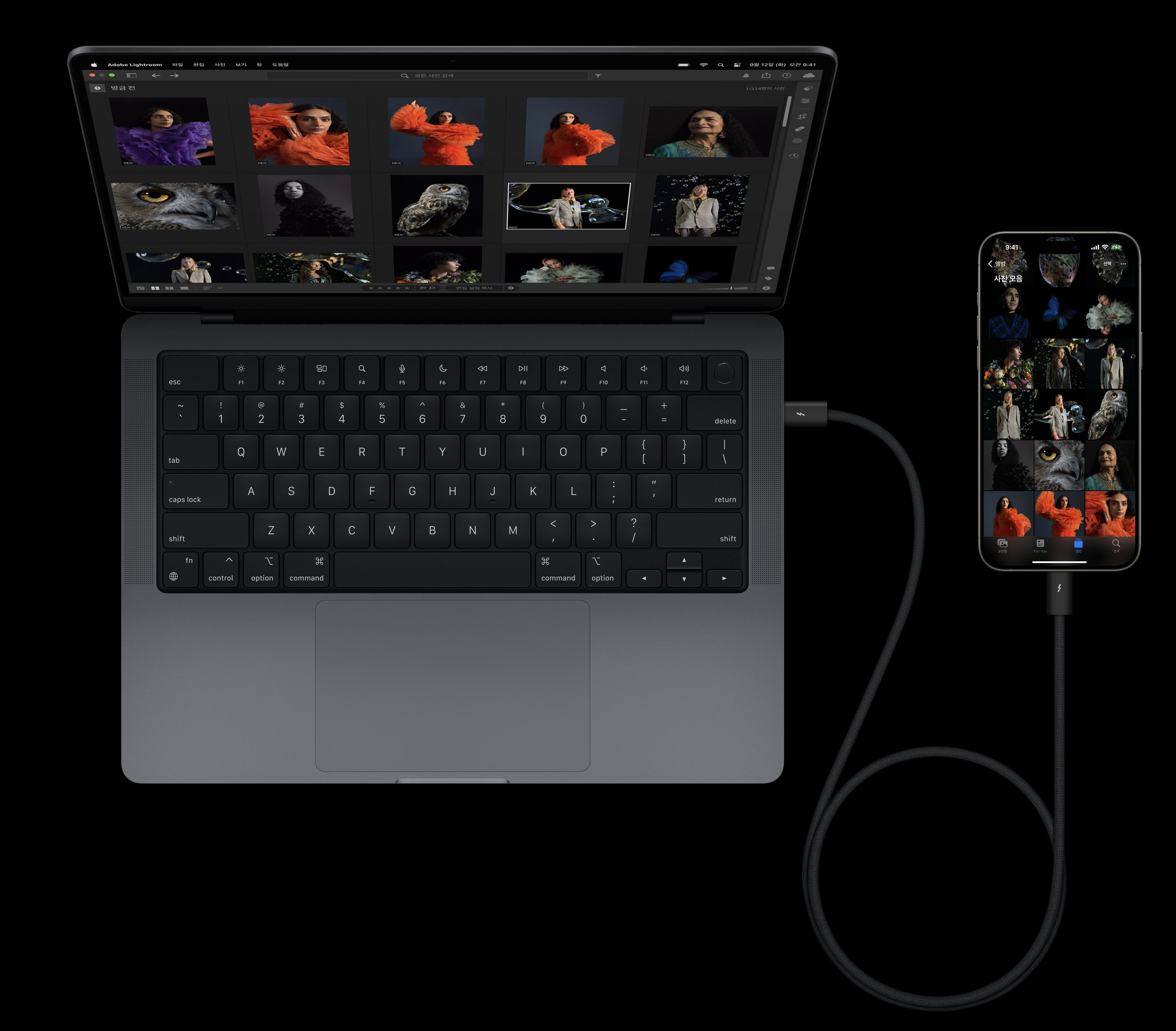 아이폰15 프로(아이폰15 Pro), 아이폰15 프로 맥스(아이폰15 Pro Max)는 USB 3 규격을 지원해 예전보다 최대 20배 빨라진 초당 최대 10기가비트의 데이터 전송을 제공합니다. 그리고 USB-C 커넥터를 활용해 에어팟, 애플워치를 아이폰과 연결해 충전을 할 수 있습니다.