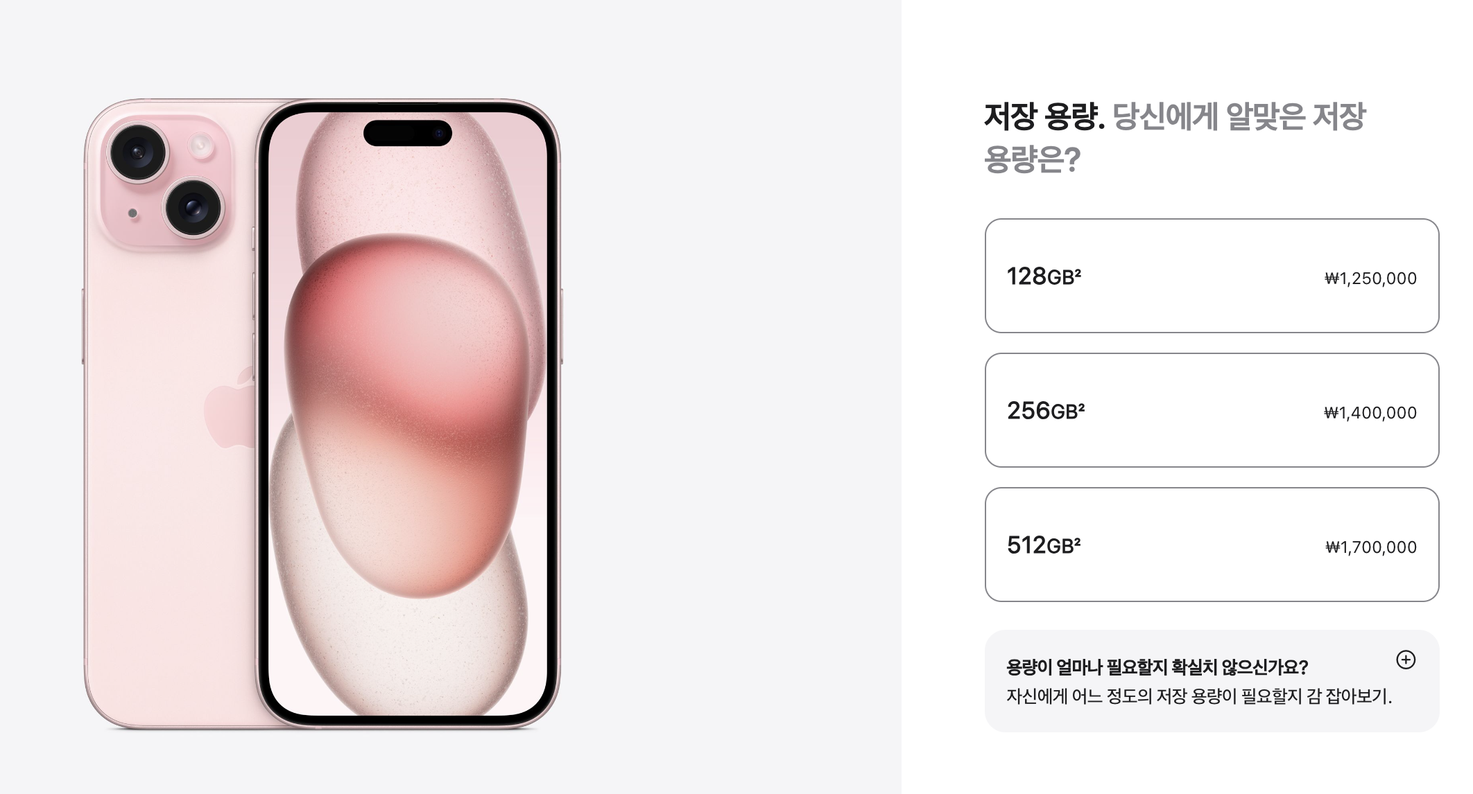 8. 아이폰15, 아이폰15 플러스 저장공간