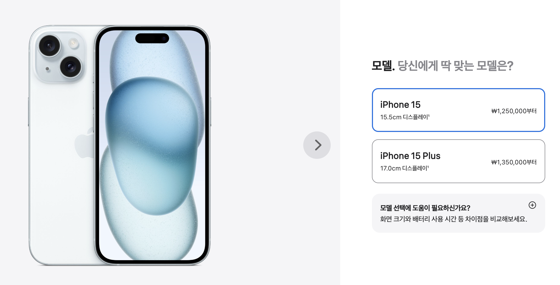 아이폰15 가격은 1,250,000원 부터 시작하고 아이폰15 플러스 가격은 1,350,000원 입니다. 아이폰14의 경우 아이폰14 플러스 인기가 별로 없었는데 아이폰15 플러스는 전면에서 보는 디자인 차이가 없기 때문에 좋은 반응이 예상됩니다.