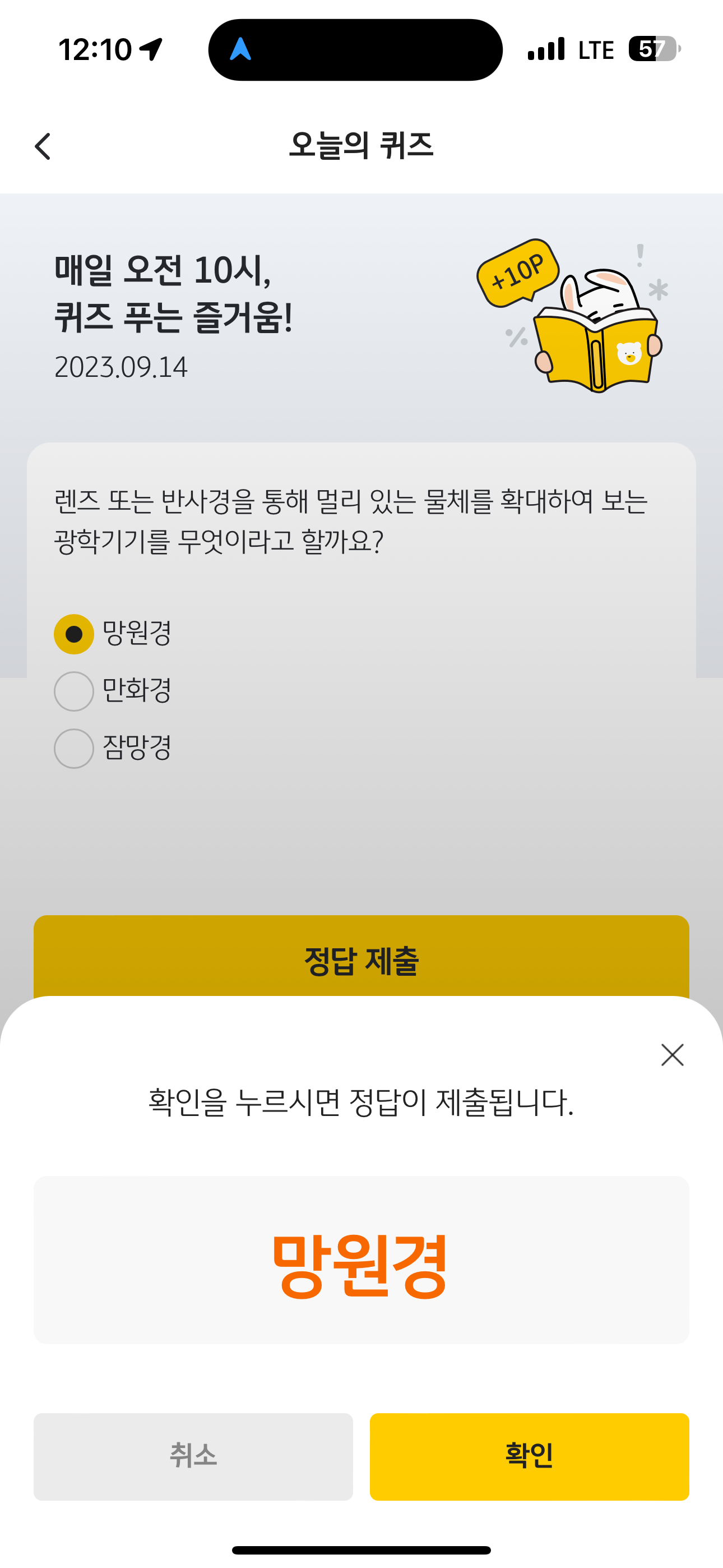 Kb pay 오늘의 퀴즈 정답은 망원경 입니다
