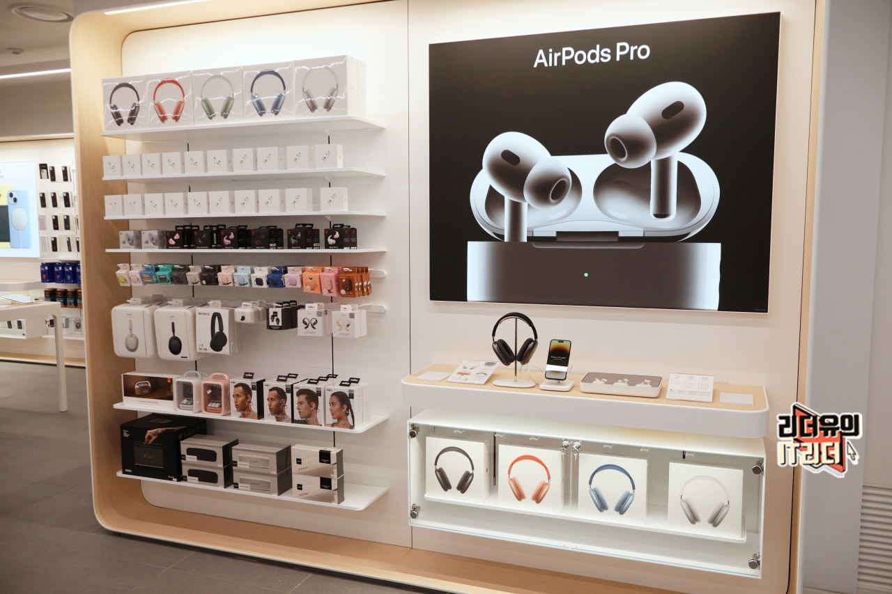 절대 강자가 된 에어팟 공간입니다. 에어팟 맥스, 에어팟 프로 2세대, 에어팟 3세대가 있고 가성비 좋은 애플 산하의 음향기기 브랜드 비츠 관련 제품들도 있습니다. 그리고 다른 회사의 제품들도 있으니 자신에게 맞는 제품을 잘 골라볼 수 있습니다.
