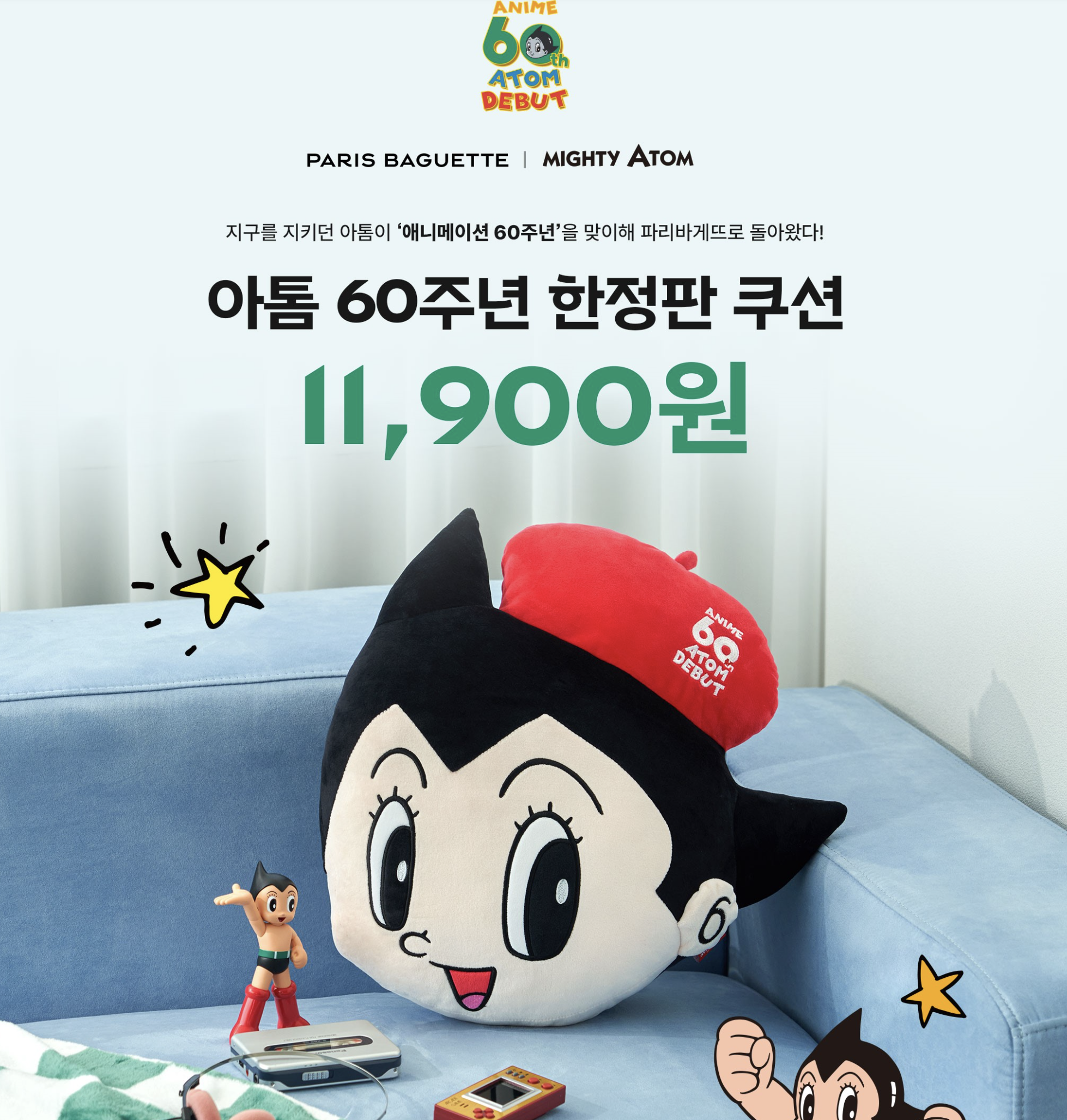 귀여운 파리바게트 아톰 60주년 한정판 쿠션