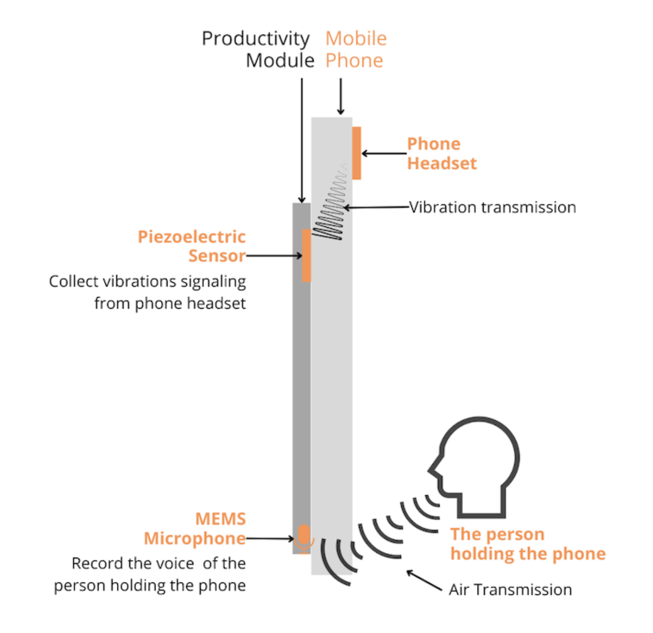 아이폰 통화녹음 액세서리 Smoovie 맥세이프 통화 녹음기 작동 방식은 아이폰 수화기에서 소리를 낼 때 진동이 발생하여 진동 신호가 뼈의 센서로 전달 되는데요. 골격 인덕터가 있어 이 진동 신호를 습득해 전기 신호로 변환한다고 합니다. 얼마나 소리가 잘 들어갈지 궁금한 기술 포인트입니다.