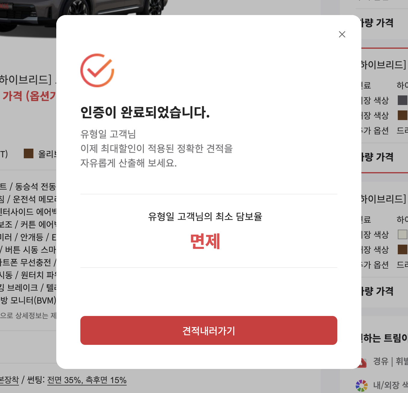 바로 본인확인이 되었고 저는 최소 담보율이 면제로 나왔습니다.