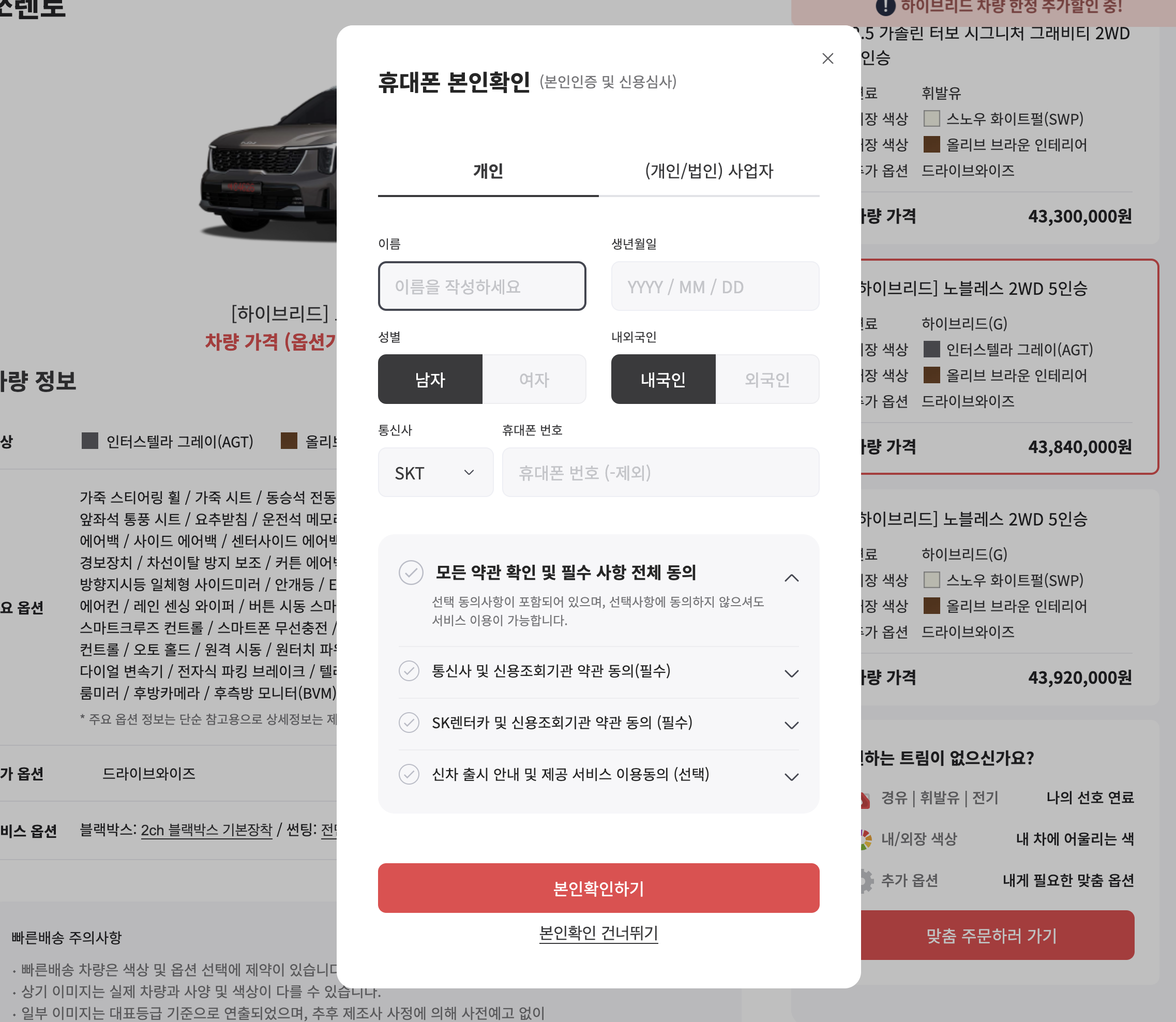 렌트조건 확인을 위해 본인확인 절차를 거칩니다.