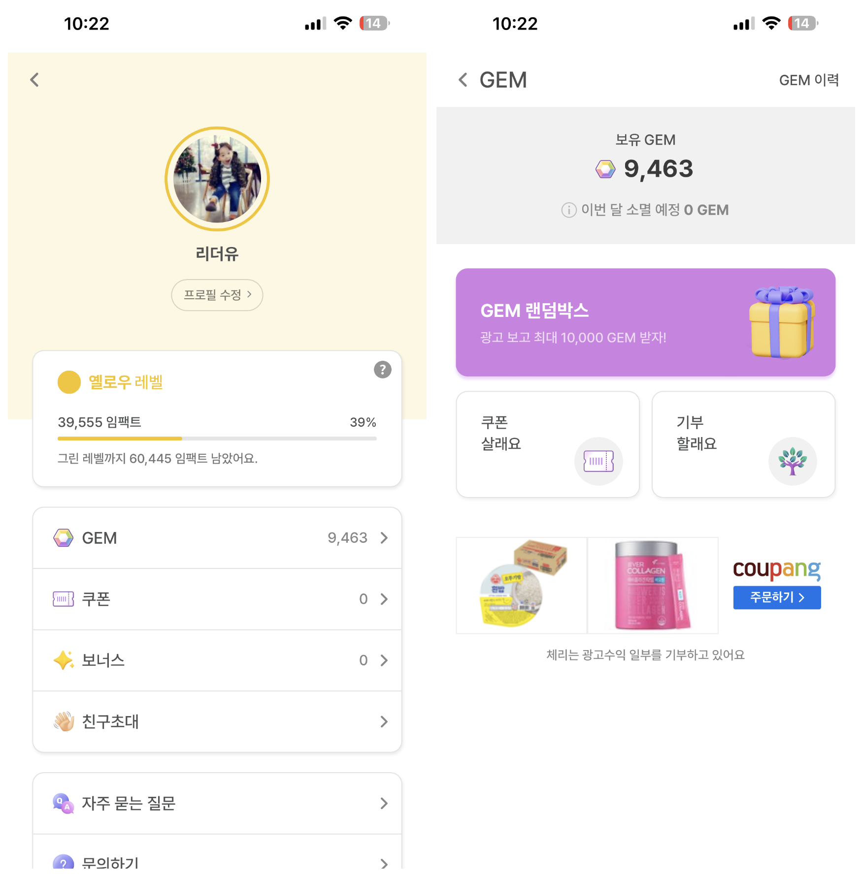 걷기만 해도 기부되는 체리월드에서 초대 코드 입력하고 즉시 1000 GEM 받아요!