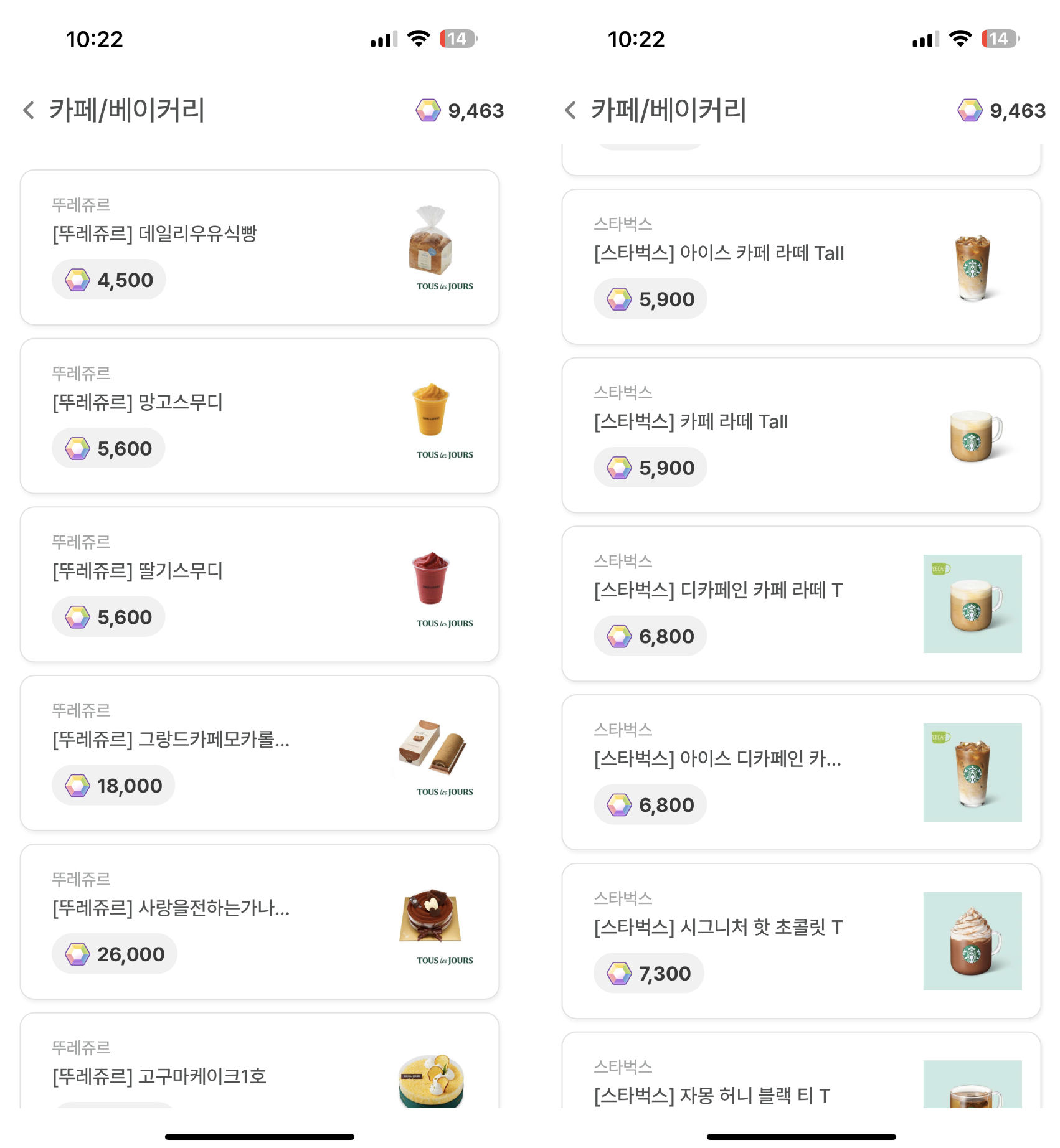 뚜레쥬르 제품 교환, 스타벅스 커피 교환 가능하니 정말 좋죠. 걷기 운동하고 보상으로 이런거 바꿔 먹으면 좋습니다.