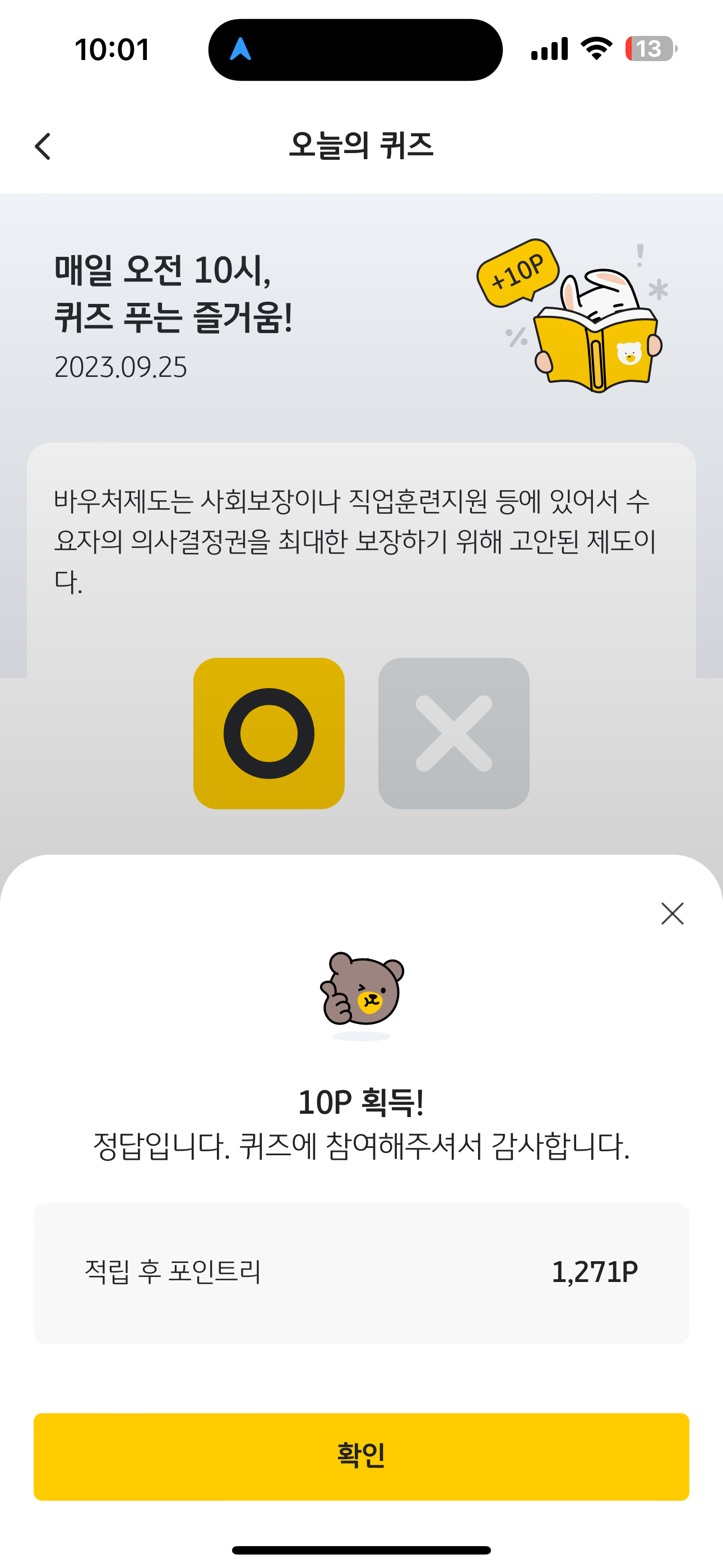 KB Pay 오늘의 퀴즈 정답은 O 입니다