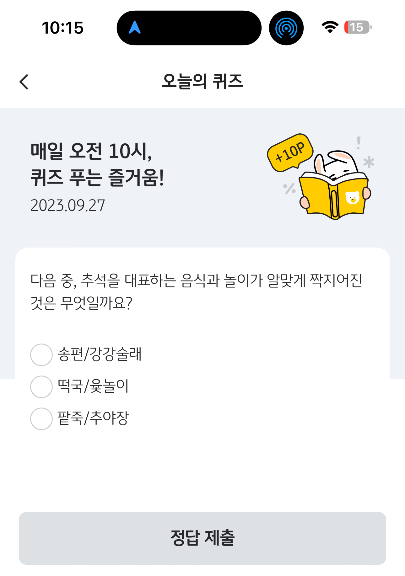 KB Pay 오늘의 퀴즈 정답은 송편/강강술래 입니다