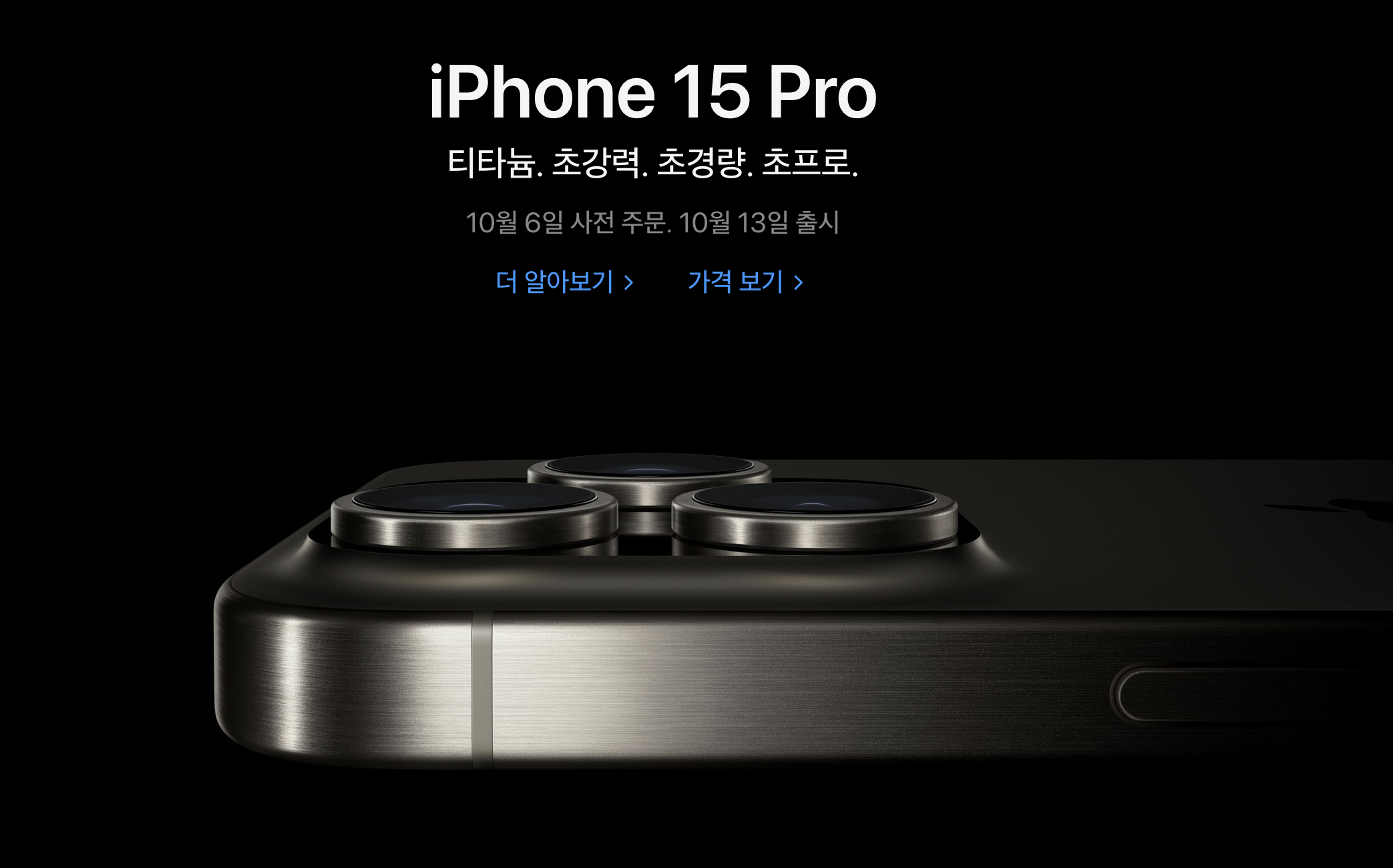 아이폰15, 아이폰15 플러스, 아이폰15 프로(아이폰15 Pro), 아이폰15 프로 맥스(아이폰15 Pro Max), 애플워치 시리즈9(애플워치9), 애플워치 울트라2 한국 출시는 10월 13일 금요일 입니다.