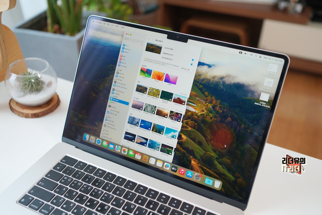맥OS 소노마 macOS Sonoma는 특별한 화면보호기 기능을 제공합니다. 애플 다운 감성을 확인해 볼 수 있는 기능인데요. 잘 참고해서 활용해 보시기 바랍니다. 보여드리는 노트북은 M2 맥북에어 15인치 입니다. 노트북 추천 모델입니다.