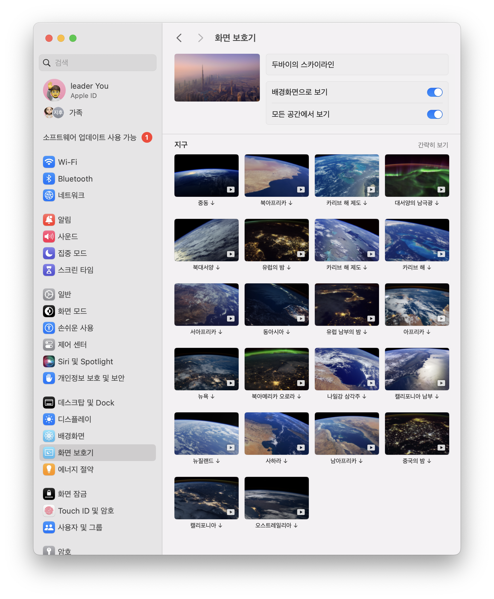 맥OS 소노마 macOS Sonoma 화면보호기 지구는 총 22가지 입니다.