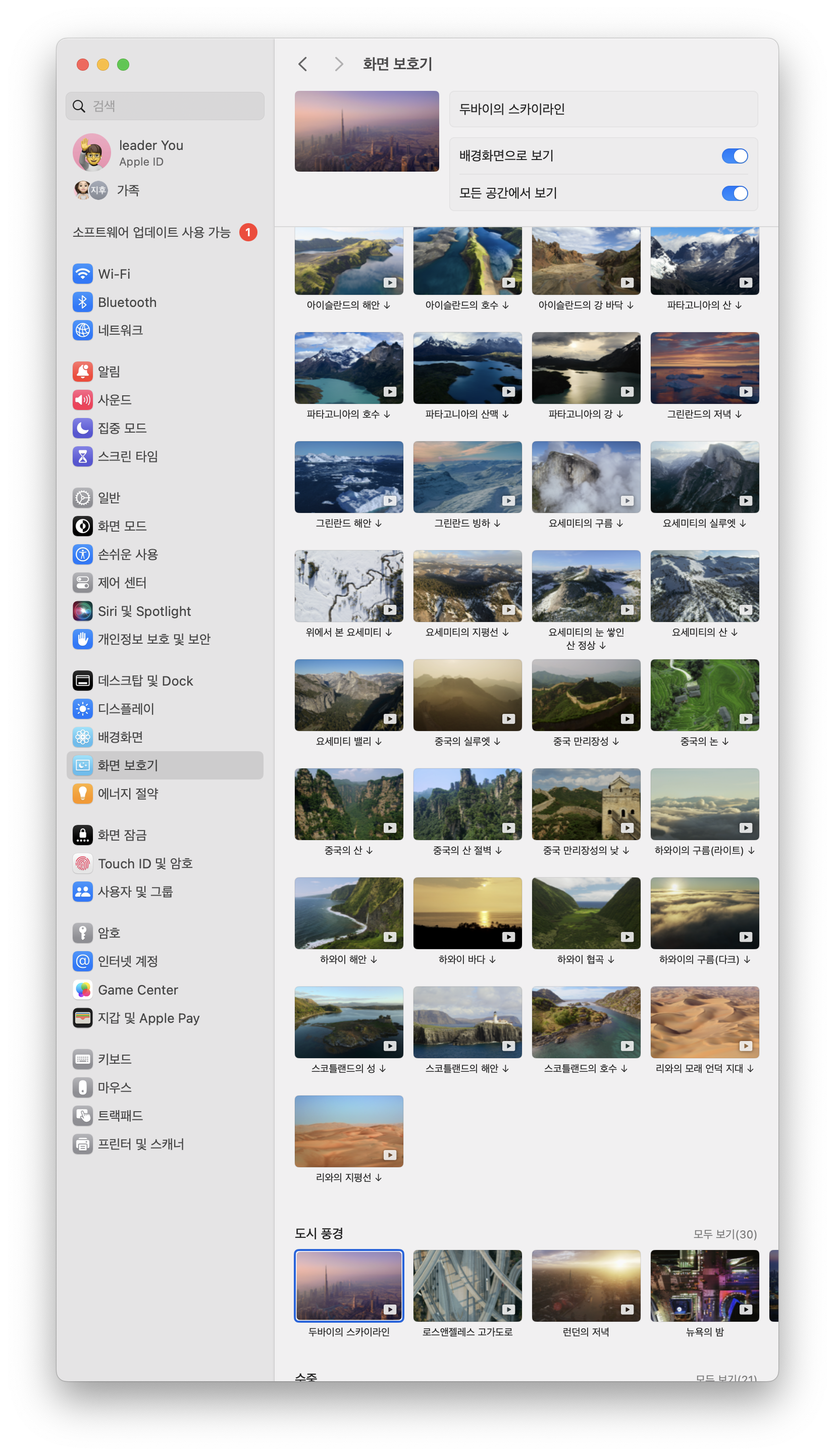 맥OS 소노마 macOS Sonoma 화면보호기 도시 풍경은 총 30가지 입니다.