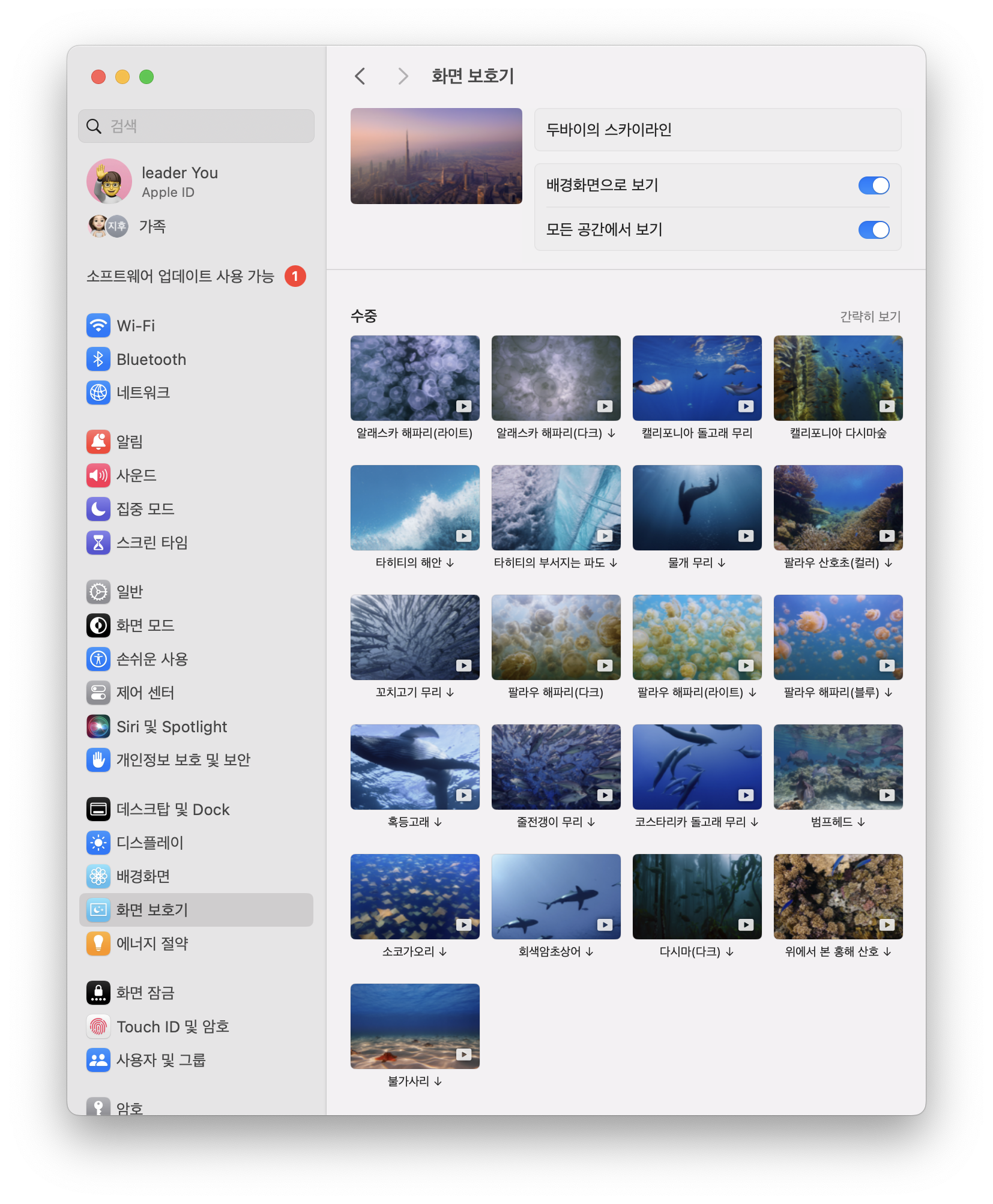 맥OS 소노마 macOS Sonoma 화면보호기 수중은 총 21가지 입니다.