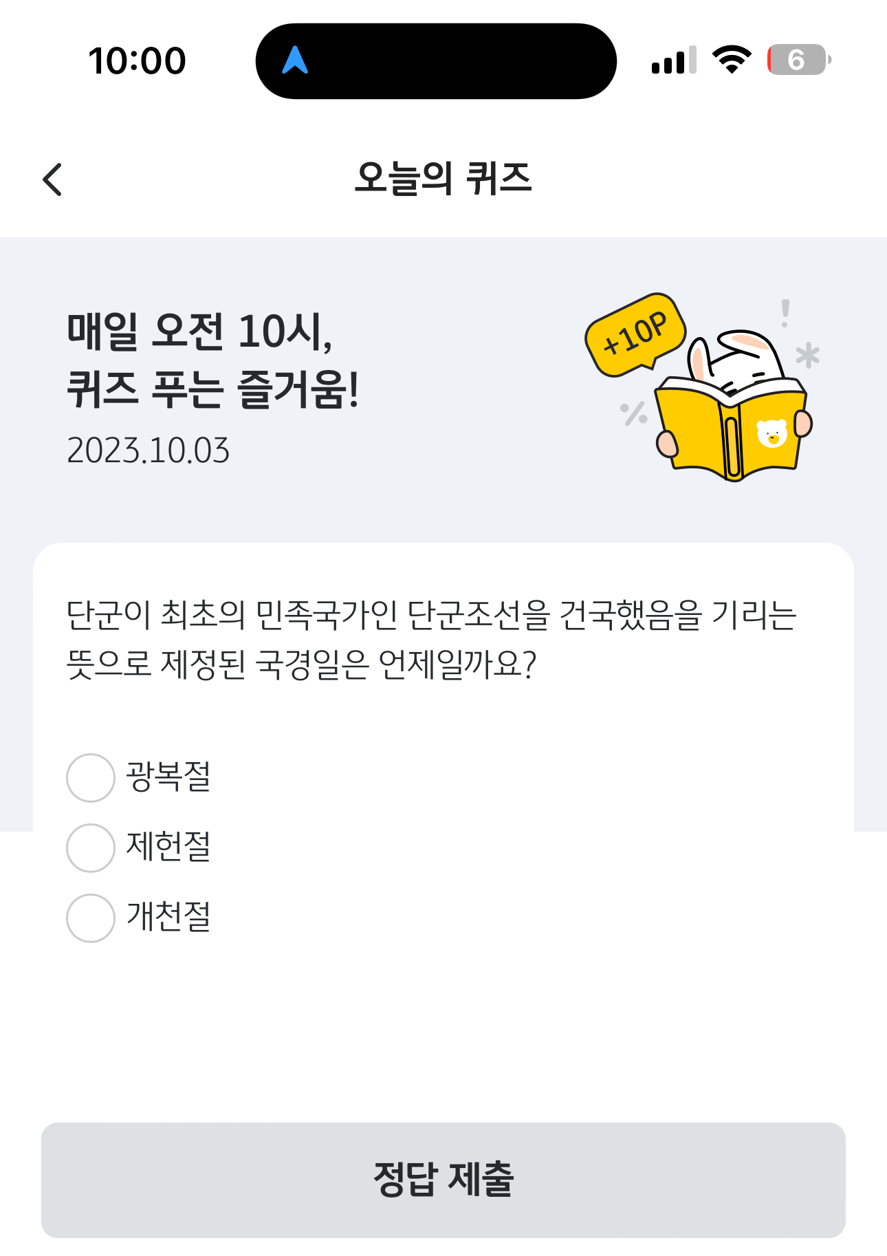 KB Pay 오늘의 퀴즈 정답은 개천절 입니다