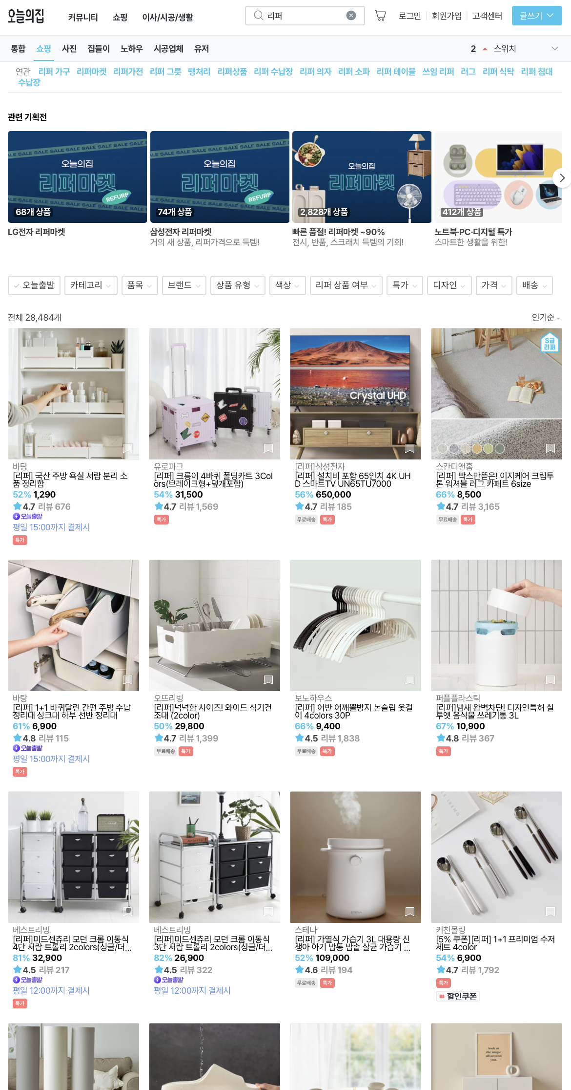 오늘의집 리퍼마켓에 가면 LG전자 리퍼마켓, 삼성전자 리퍼마켓이 별도로 운영되고 여러가지 소품이나 가구 등 리퍼마켓이 운영되고 있습니다. 우리가 반품하는 제품, 스크레치로 약간 문제가 있는 제품들을 파격적으로 할인해서 판매하는 것인데요. 그래서 이런 흠 정도는 괜찮다 하시는 분이라면 합리적인 구입이 가능한 곳입니다.