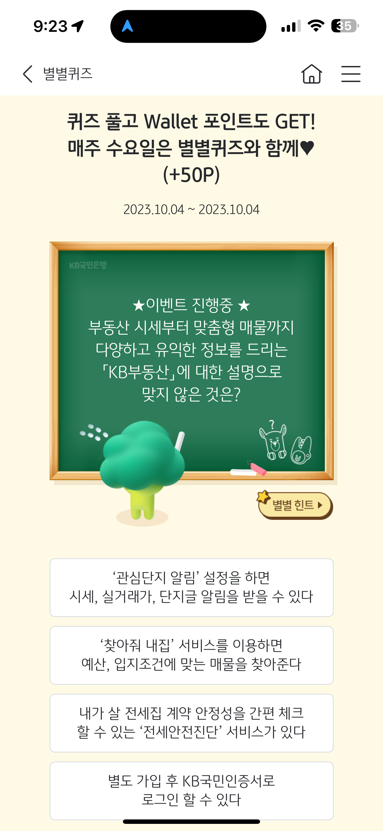 KB스타뱅킹 별별퀴즈 10월 4일 문제입니다.