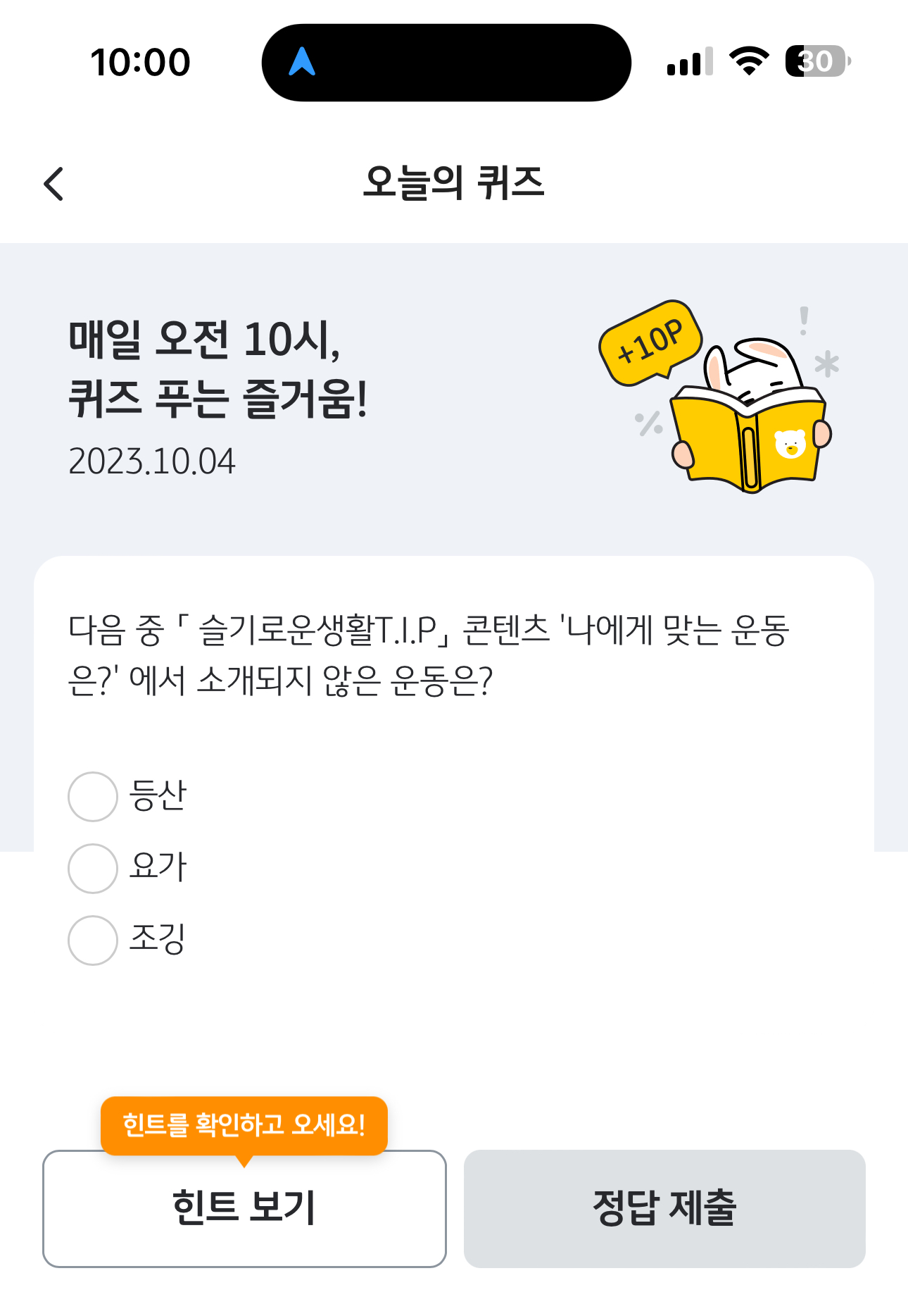 KB Pay 오늘의 퀴즈 정답은 조깅 입니다
