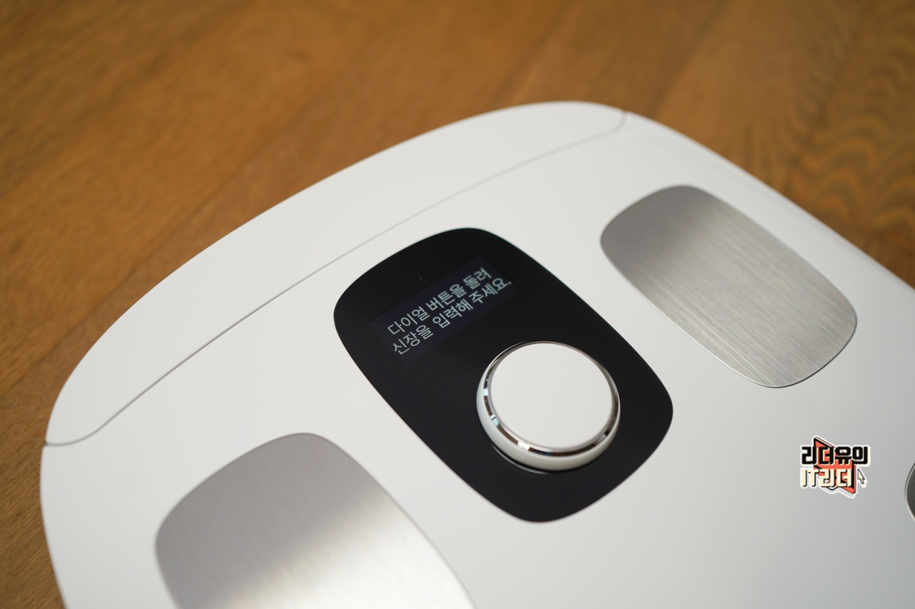 상단 부분에는 다이얼이 있어 일반적인 체중계와는 다른 디자인 요소를 만날 수 있습니다.