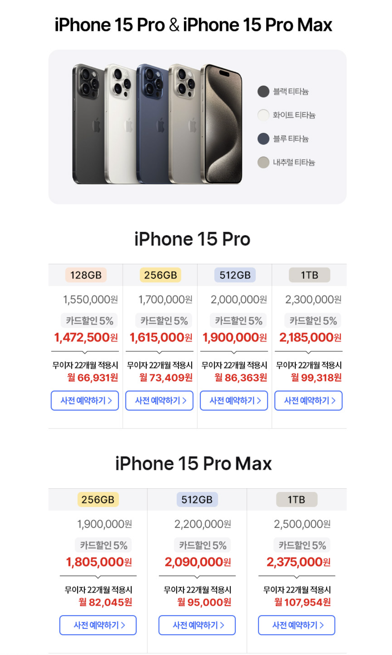 아이폰15 / 플러스, 아이폰15 프로 / 맥스 사전예약 할인