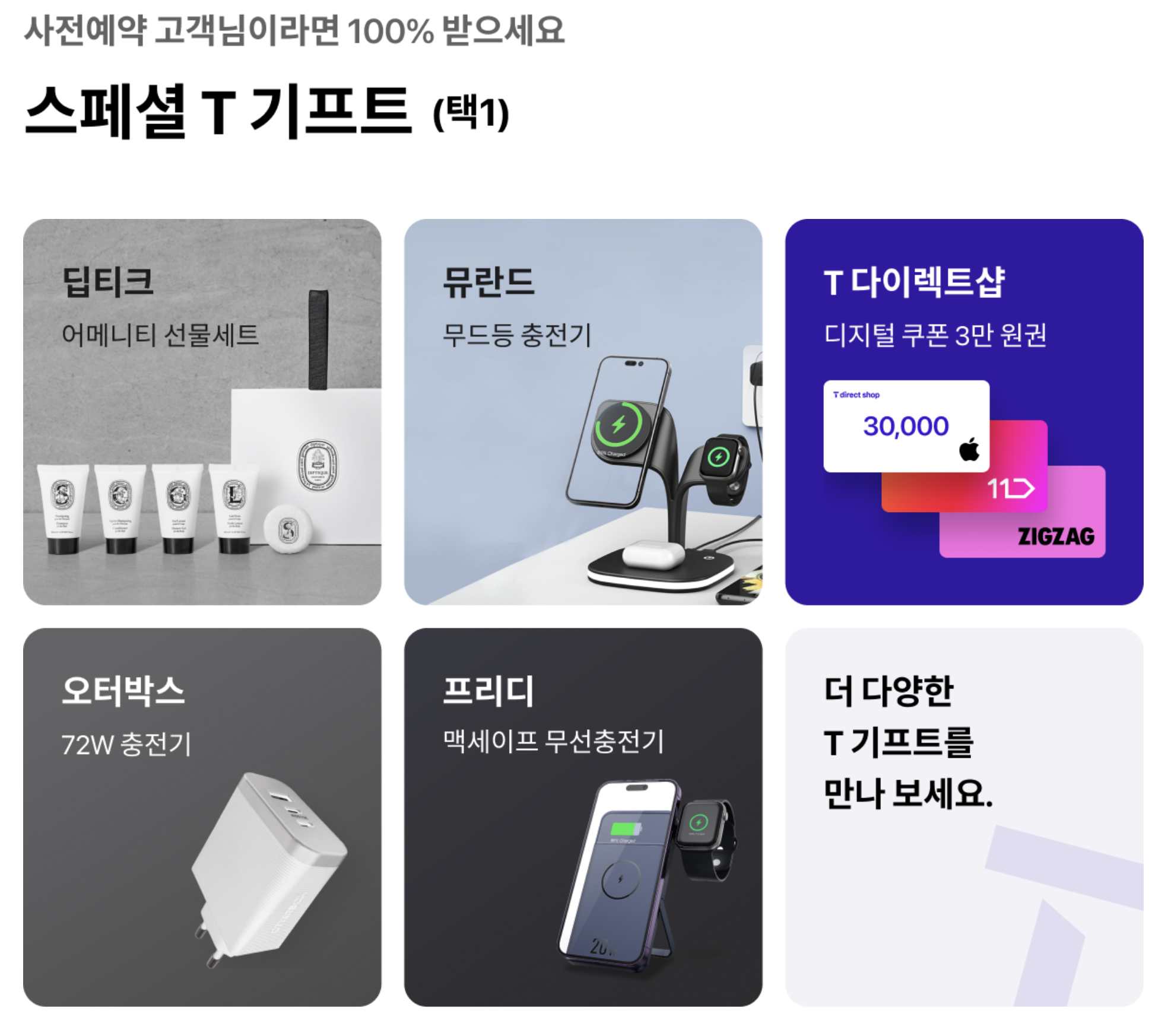 SKT 아이폰15 / 아이폰15 프로 사전예약 혜택으로 택1 선물도 받을 수 있습니다. 아이폰15 시리즈와 매칭해서 사용할 수 있어서 좋은 혜택입니다.