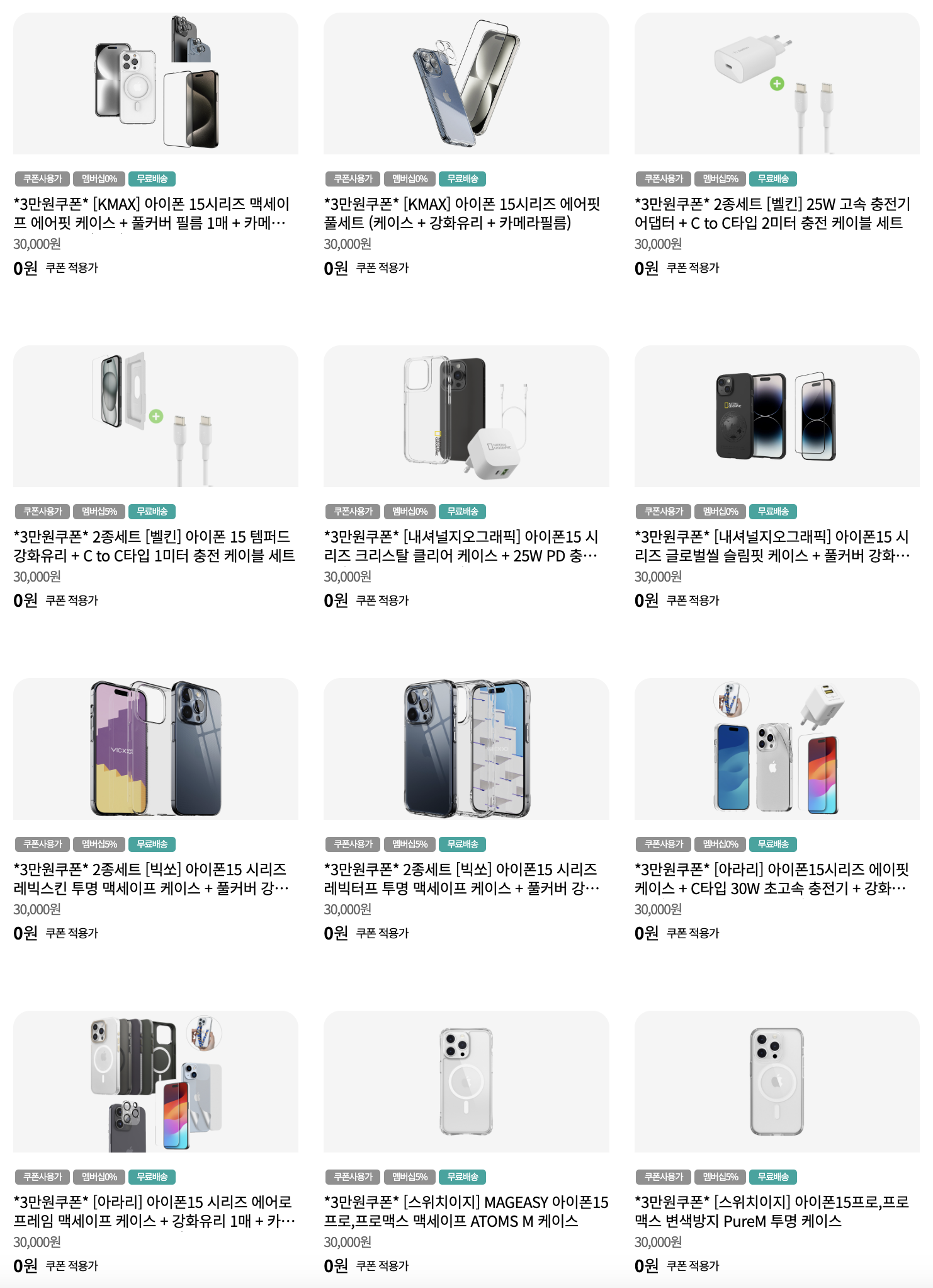 정말 다양한 종류의 아이폰15 액세서리가 3만원 쿠폰에 맞춰져 있습니다. 이 외에도 많이 있어 선택의 폭이 넓습니다.