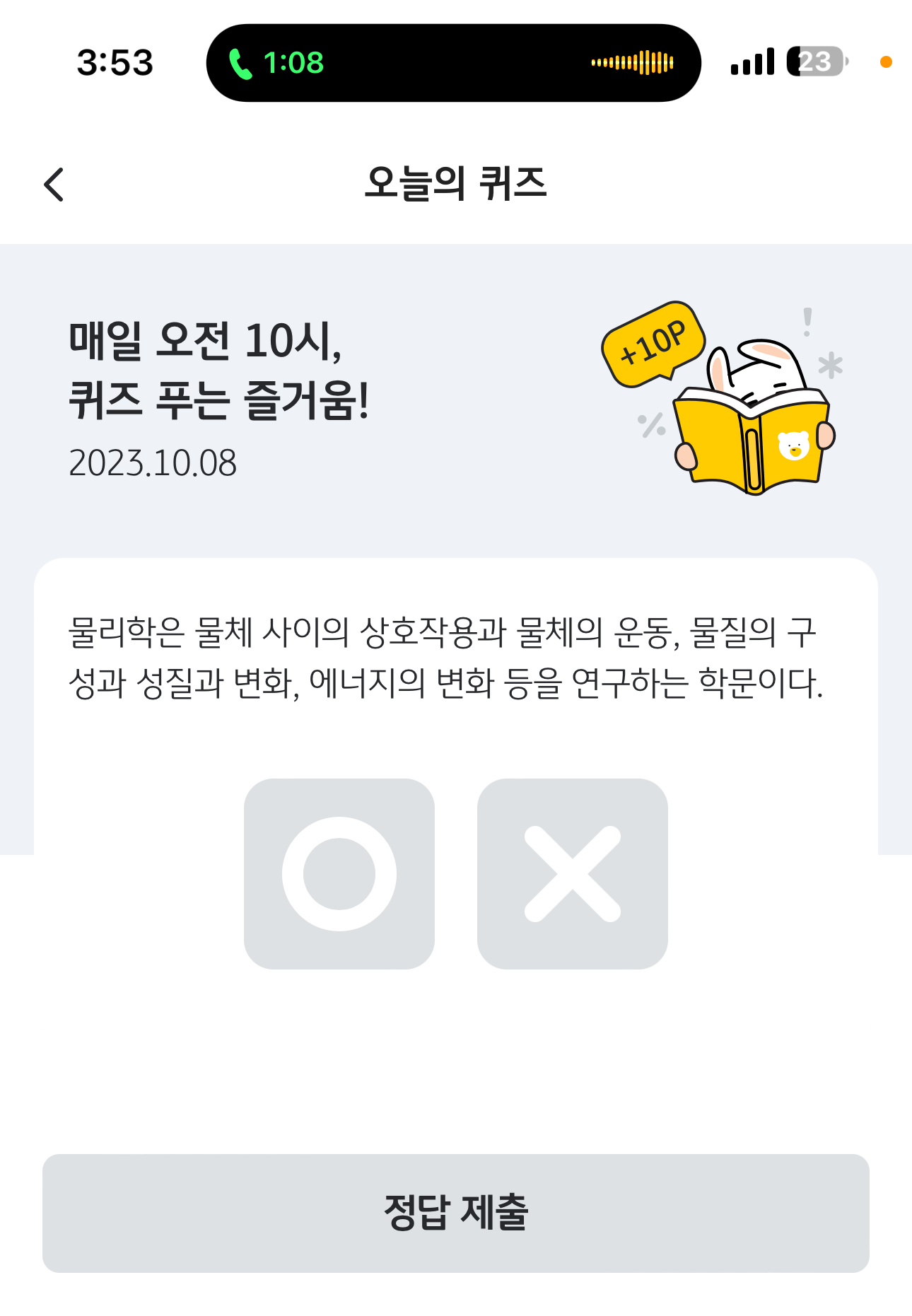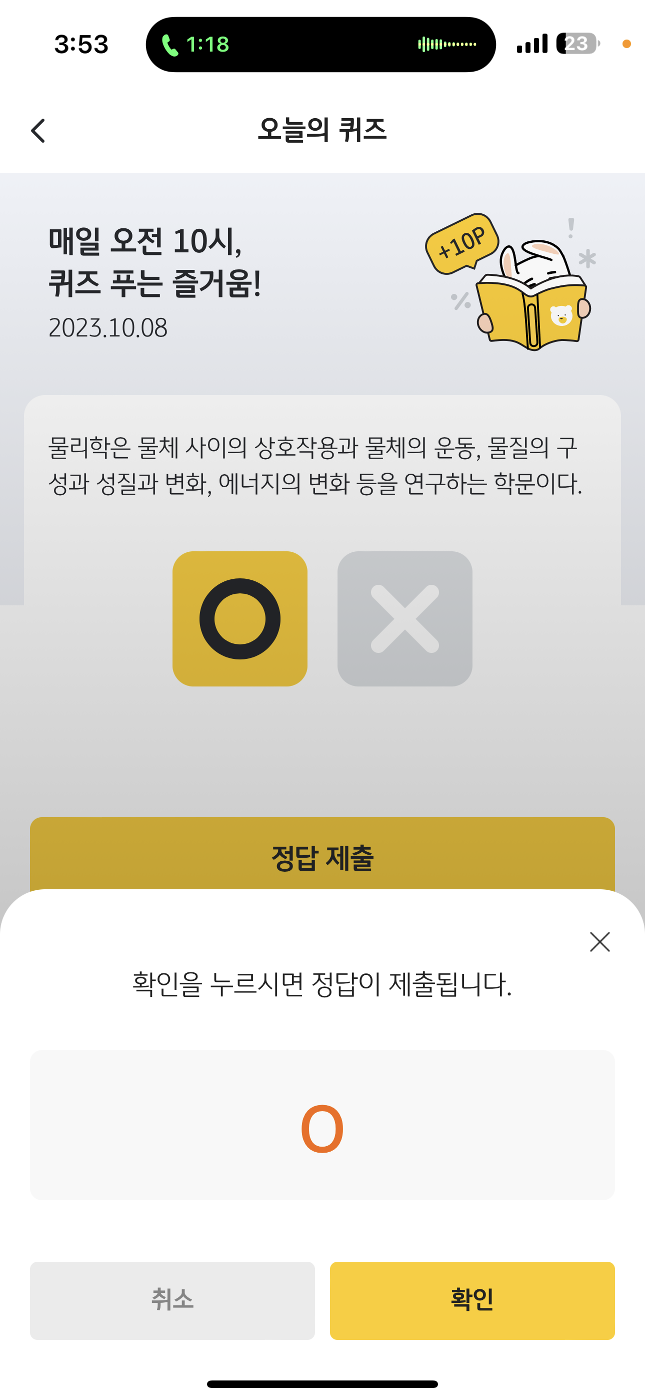 KB Pay 오늘의 퀴즈 정답은 O 입니다