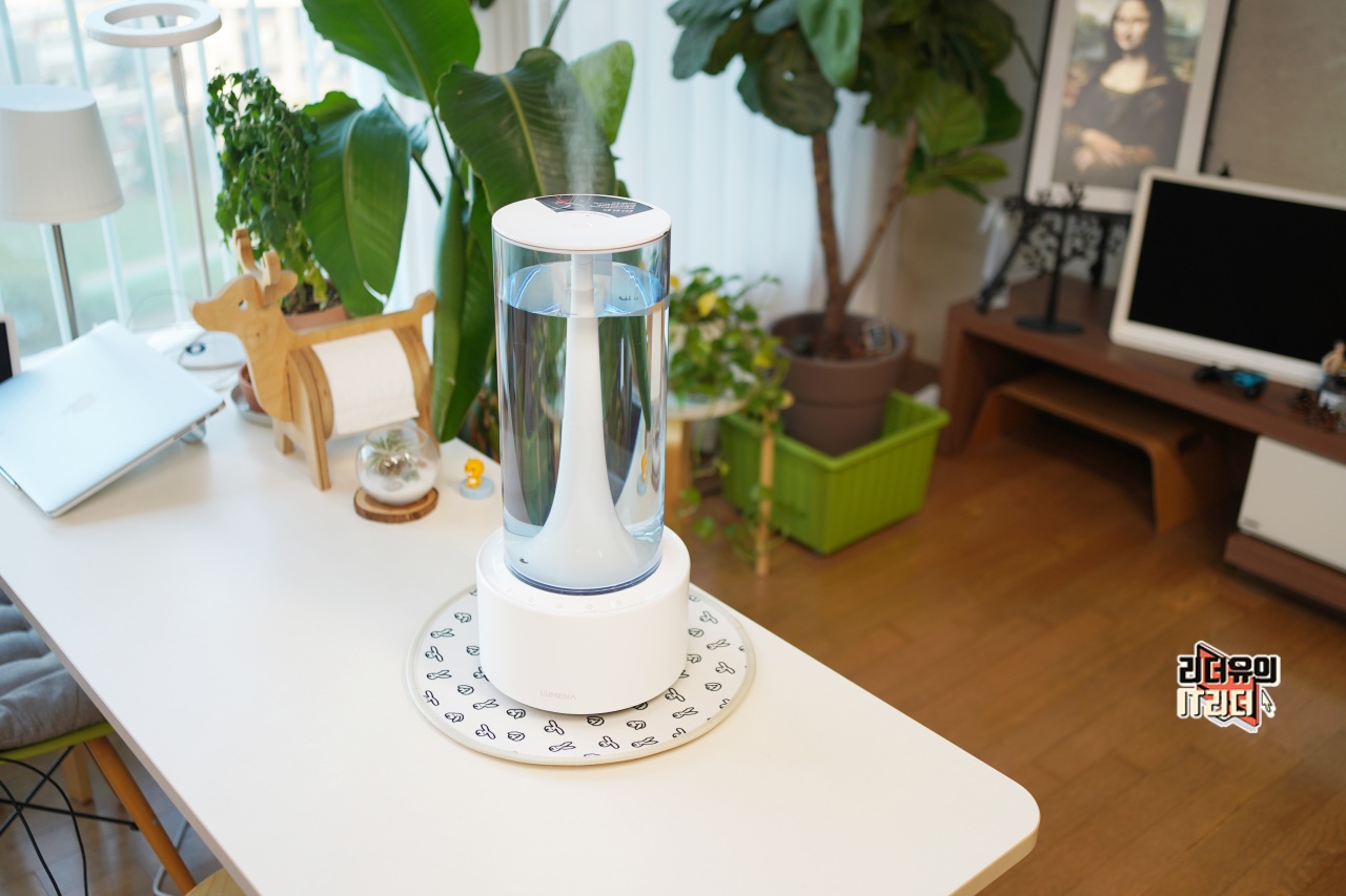그리고 상단부의 수조통은 물의 수위를 직관적으로 알 수 있는 클리어한 수조통으로 되어 있고 용량은 무려 4.3L의 대용량 수조통입니다. 시간당 최대 350ml의 강력한 가습 성능까지 가지고 있어 공간이 넓은 곳도 충분히 커버가 가능한 대용량 가습기 입니다.