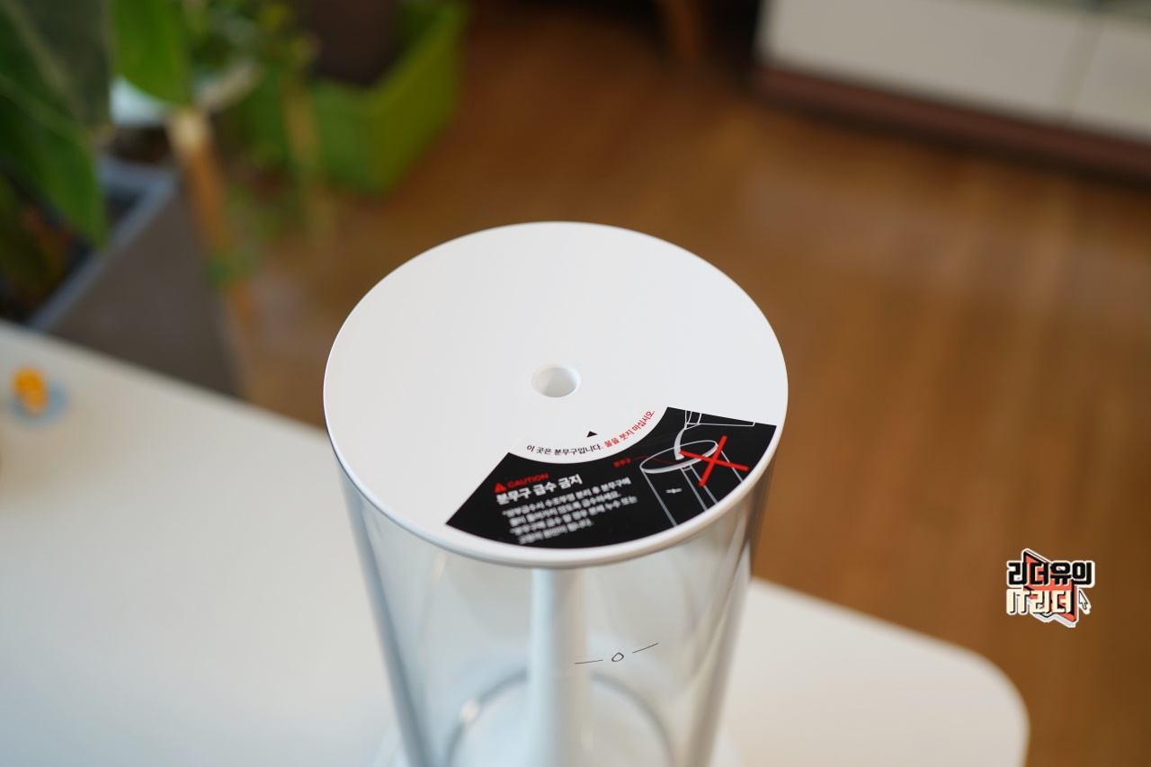 참고로 위에 경고 스티커가 붙어 있는데요. 사용자가 모르고 위에 구멍으로 물을 넣을까봐 주의를 주는 것입니다. 분무가 되는 곳으로 저기에 물이 들어가지 않게 해야 합니다.