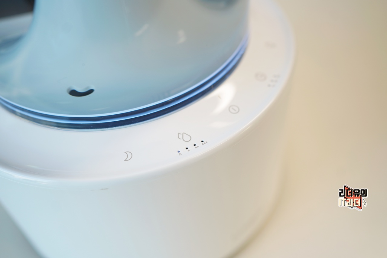 습도 30% 이하시에는 옐로우, 습도 50% 이하시에는 그린, 습도 51% 이상 시에는 블루 입니다. 인테리어적인 요소 뿐만 아니라 시각적으로 습도 상태를 알 수 있어서 좋습니다. 그리고 물부족 혹은 작동 중 수조통 분리 시에는 레드 불이 들어옵니다.